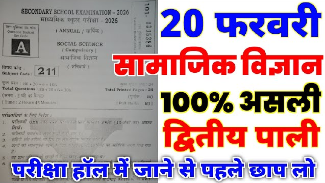 Bihar Board Class 10th 20 February 1st sitting Social Science Viral Question paper 2026: बिहार बोर्ड मैट्रिक 20 फरवरी प्रथम पाली के लिए सामाजिक विज्ञान का वायरल क्वेश्चन पेपर आ गया, यही आएगा।  नमस्कार दोस्तों अभी आप प्रथम पाली में सामाजिक विज्ञान का पेपर देने जा रहे हैं तो आपको बतला दे कि हमारे पास … Read more