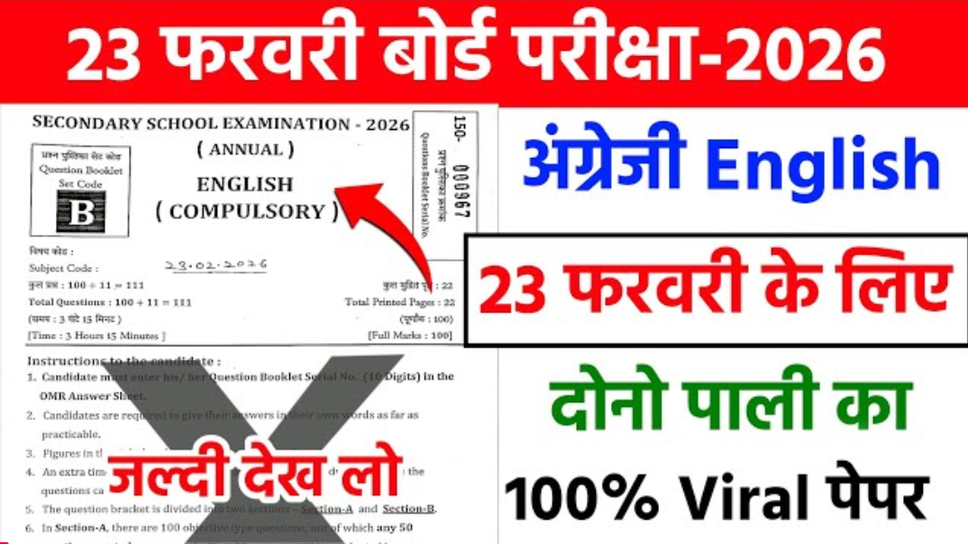 Class 10th 23 February English Viral Question paper 2026: बिहार बोर्ड मैट्रिक 23 फरवरी के लिए अंग्रेज़ी का वायरल क्वेश्चन पेपर आ गया, यहाँ से प्राप्त करें।