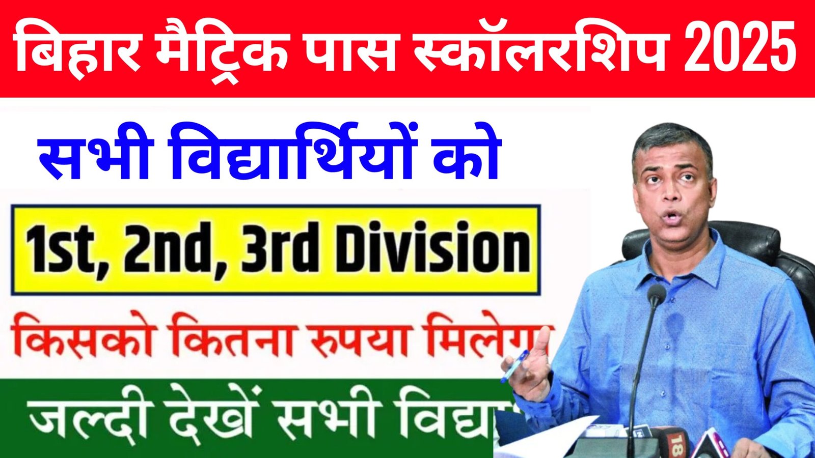 जो विद्यार्थी मैट्रिक की परीक्षा 2025 में प्रथम डिवीजन से पास किए हैं उनको बिहार बोर्ड के तरफ से मुख्यमंत्री बालक बालिका प्रोत्साहन योजना के अंतर्गत ₹10, 000 की स्कॉलरशिप की राशि प्रदान की जाएगी