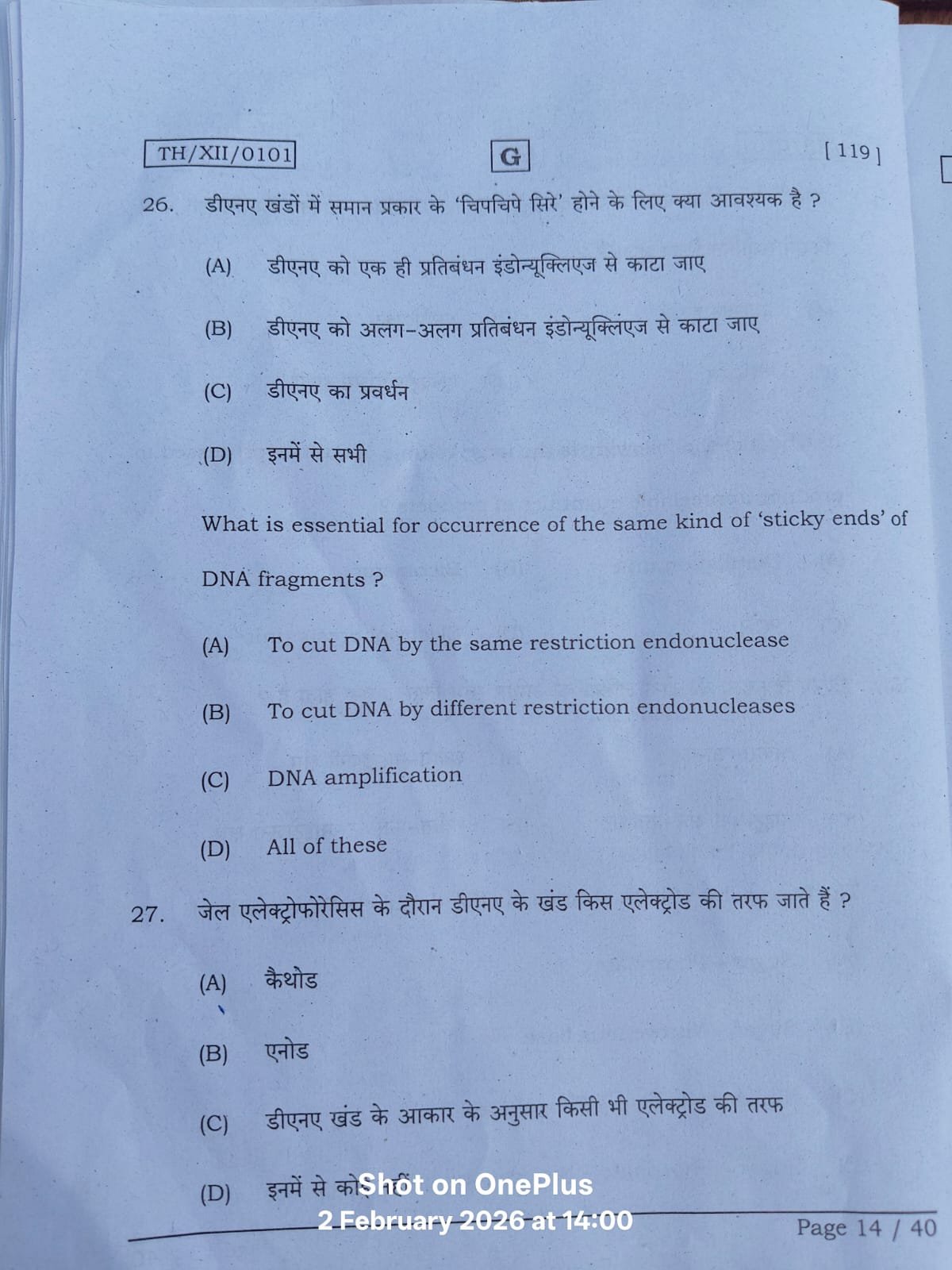 2 February, 12th Biology all set Answer Key 2026: बिहार बोर्ड 12वीं Biology Answer Key, मिल लो कितना सही हैं।
