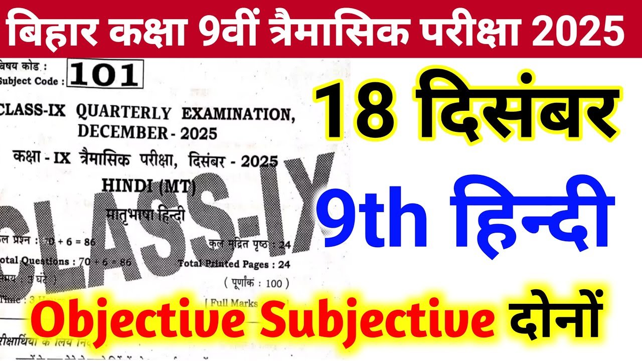 9th Class Hindi 18 December Answer Key quarterly exam 2025: बिहार बोर्ड 9वीं हिंदी त्रैमासिक परीक्षा का आंसर की, यहाँ से प्राप्त करें।