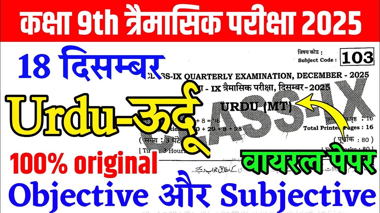 9th Class Urdu 18 December Answer Key quarterly exam 2025: बिहार बोर्ड 9वीं उर्दू त्रैमासिक परीक्षा का आंसर की, यहाँ से प्राप्त करें।