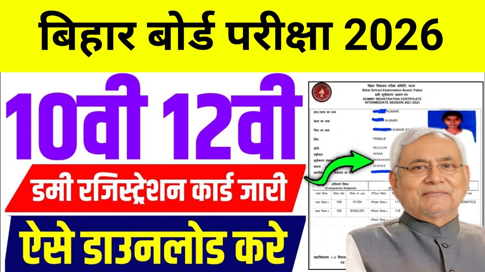 Bihar Board 12th Dummy Registration Card 2026 Release date: बिहार बोर्ड कक्षा 12वीं डमी रजिस्ट्रेशन कार्ड जारी, यहां से डाउनलोड करें:- बिहार बोर्ड द्वारा इंटर फाइनल परीक्षा 2026 का डमी रजिस्ट्रेशन कार्ड आधिकारिक वेबसाइट पर जारी कर दिया गया है जिस विद्यार्थी 5 जुलाई से लेकर 25 जुलाई के बीच में डाउनलोड कर सकते हैं … Read more