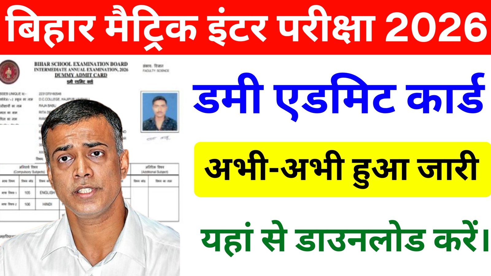 Bihar Board 10th 12th Dummy Admit Card 2026 jari: बिहार बोर्ड 10वीं 12वीं डमी एडमिट कार्ड जारी, ऐसे करें डाउनलोड:- आप भी बिहार बोर्ड के तरफ से मैट्रिक इंटर का फाइनल परीक्षा 2026 में देने वाले हैं और आप लोग डमी एडमिट कार्ड का इंतजार कर रहे थे कि कब तक जारी किया जाएगा तो … Read more