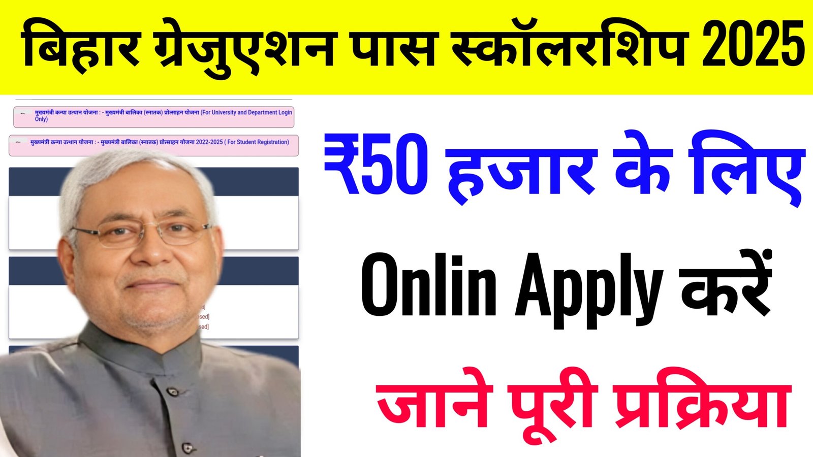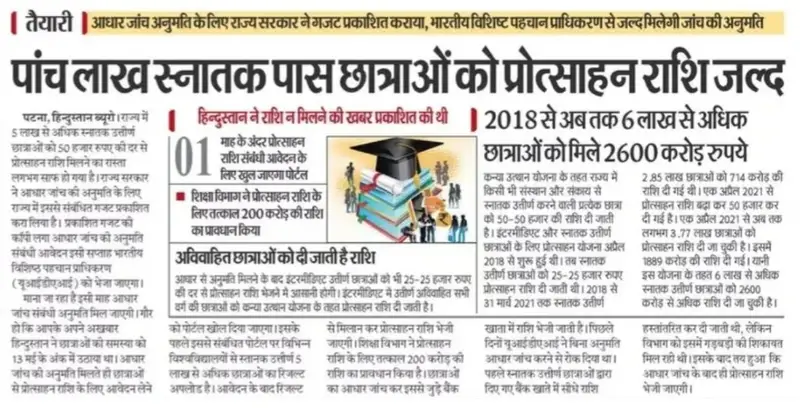 बिहार की उन सभी स्नातक पास छात्राओं के लिए एक महत्वपूर्ण अपडेट है जो मुख्यमंत्री कन्या उत्थान योजना के तहत ₹50,000 की प्रोत्साहन राशि का इंतजार कर रही हैं।