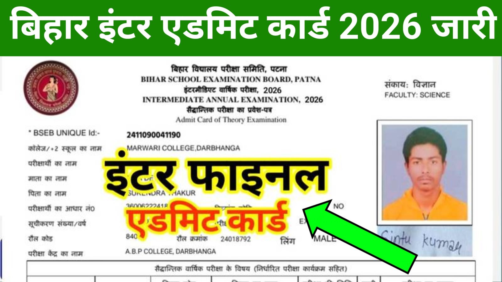 क्योंकि बिहार बोर्ड द्वारा इंटर फाइनल परीक्षा का जो ऑफिशियल एडमिट कार्ड है उसको जारी कर दिया गया है जी हां दोस्तों आप इस आर्टिकल में बने रहिए हम आपको बतलाएंगे की इंटर फाइनल परीक्षा का एडमिट कार्ड आपको किस प्रकार प्राप्त करना है एडमिट कार्ड में क्या-क्या जानकारी रहेगी पूरी डिटेल्स आपके साथ शेयर करने वाले हैं।