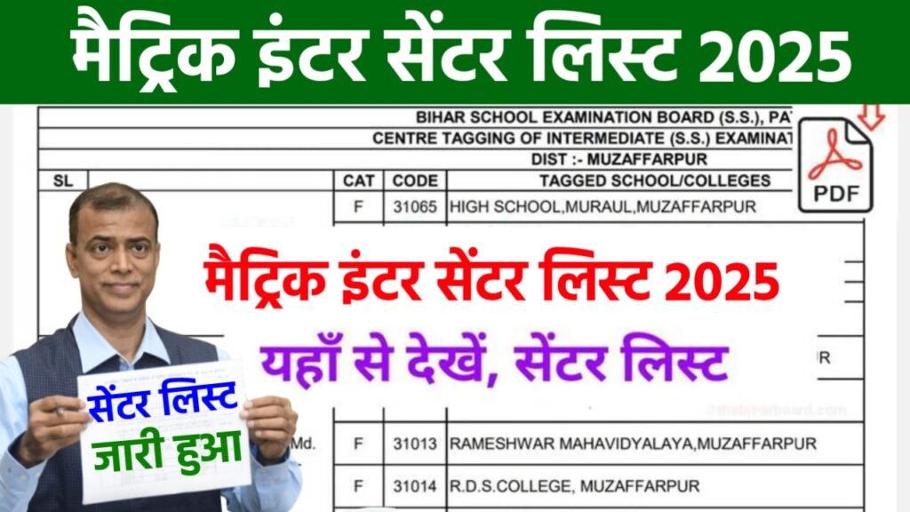 Bihar Board 10th 12th Exam 2025 Centre List Check: बिहार बोर्ड ने जारी की मैट्रिक-इंटर परीक्षा का केंद्र, यहाँ से चेक करें। बिहार स्कूल एग्जामिनेशन बोर्ड द्वारा जितने भी विद्यार्थी मैट्रिक इंटर की फाइनल परीक्षा 2025 में शामिल होने वाले हैं आप सभी विद्यार्थियों के लिए एक खुशखबरी की बात है क्योंकि आप सभी लोग … Continue reading Bihar Board 10th 12th Exam 2025 Centre List Check: बिहार बोर्ड ने जारी की मैट्रिक-इंटर परीक्षा का केंद्र, यहाँ से चेक करें।