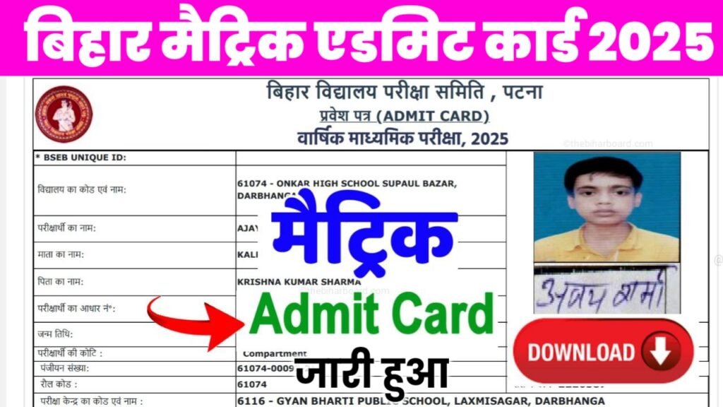 Bihar Board 10th Admit Card Download 2025: मैट्रिक एडमिट कार्ड जारी, यहाँ से डाउनलोड करें