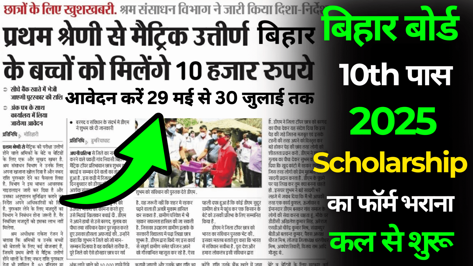 Bihar Board 10th Pass Scholarship 2025 Apply Online ||  Bihar Board Matric Pass Scholarship Form Fill Date 2025
