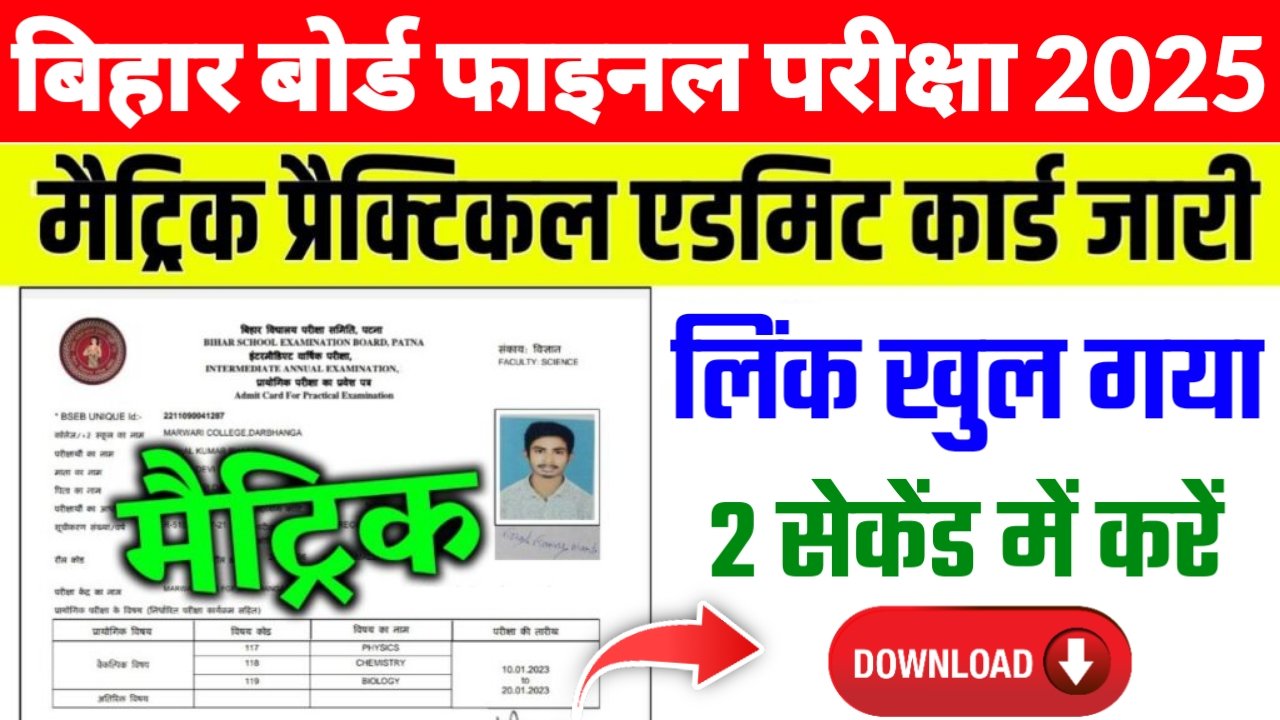 Bihar Board 10th Practical Admit Card 2025 Download: मैट्रिक प्रैक्टिकल एडमिट कार्ड जारी, यहाँ से डाउनलोड करें।