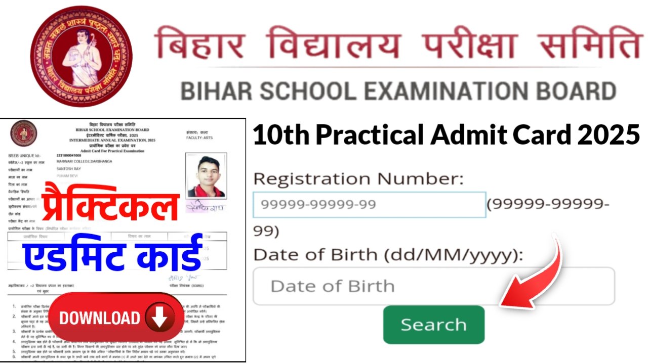 Bihar Board 10th Practical admit card 2025 Download: अभी-अभी मैट्रिक प्रैक्टिकल एडमिट कार्ड जारी, तुरंत करें डाउनलोड