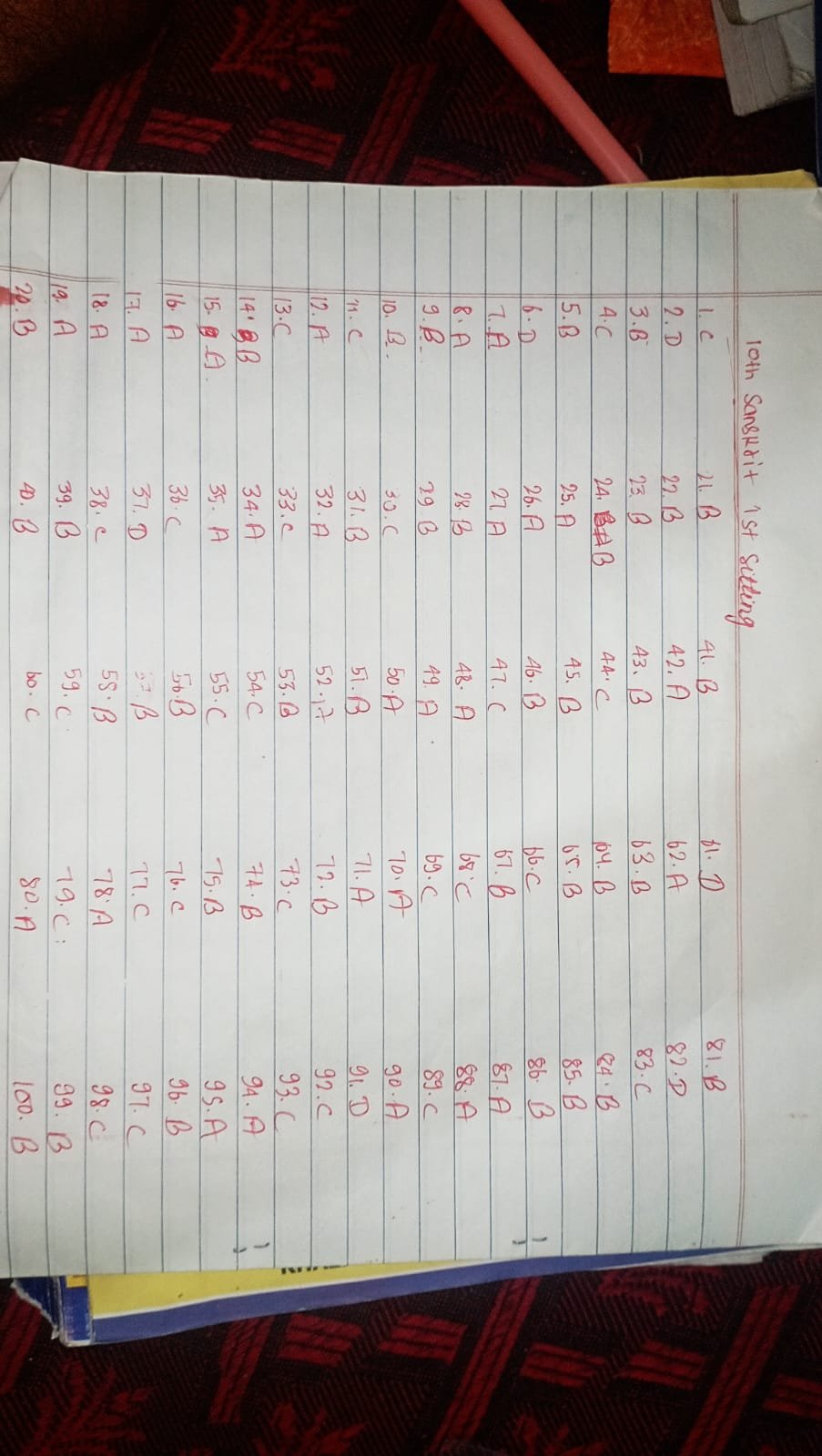 दोस्तों अगर आप भी प्रथम पाली में आज 19 फरवरी को संस्कृत का पेपर देकर एग्जामिनेशन हॉल से बाहर आ चुके हैं तो आप सभी विद्यार्थी नीचे देख सकते हैं कि हमने आप सभी विद्यार्थियों के लिए जो आपका संस्कृत का पेपर आयोजित कराया गया था। इस पेपर में (A to J) तक कुल 10 सेट दिए गए थे। हमने आपको सभी सेट का आंसर के नीचे दे दिया है ताकि आप अपने सेट के हिसाब से आंसर की मिल सके कि आपने कितना प्रश्न सही किया है और आपने कितना प्रश्न गलत किया है। नीचे देख सकते हैं, आपको आंसर की दिया गया है।