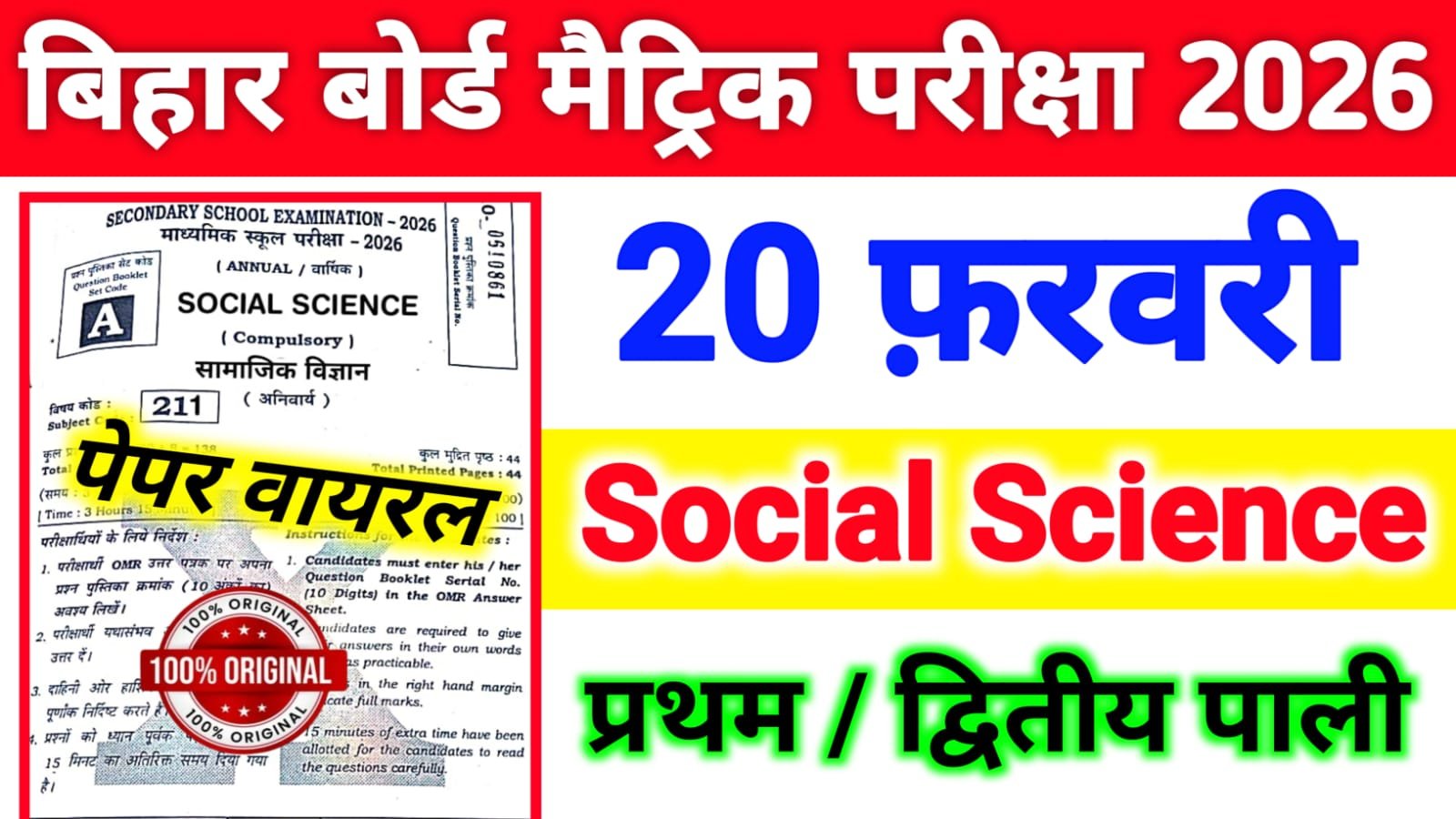 Bihar Board 10th Social Science Viral Question 2026: बिहार बोर्ड 20 फरवरी 2026, 10th Social Science वायरल प्रश्न, यहाँ से देखें?