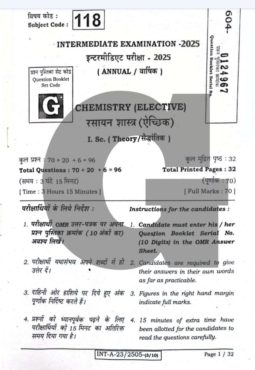 Bihar Board 12th Chemistry Answer Key 2025 All Sets: 12वीं रसायन विज्ञान आंसर की, मिला लो कितना सही है:-