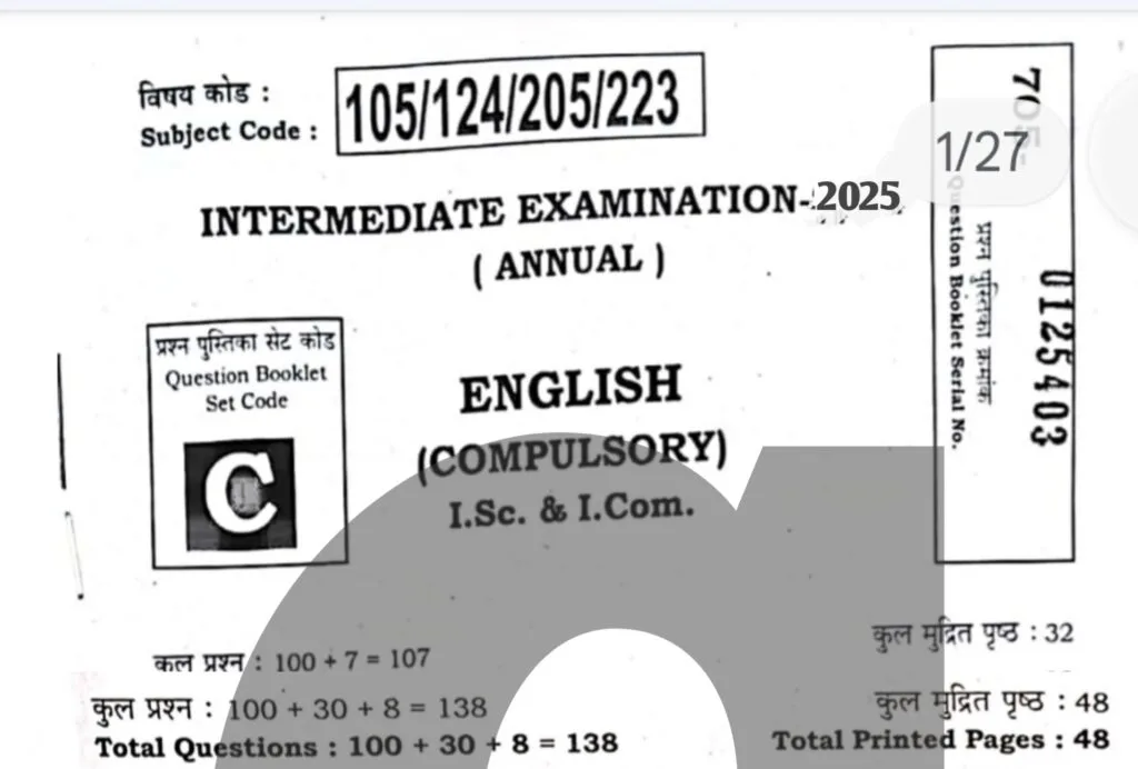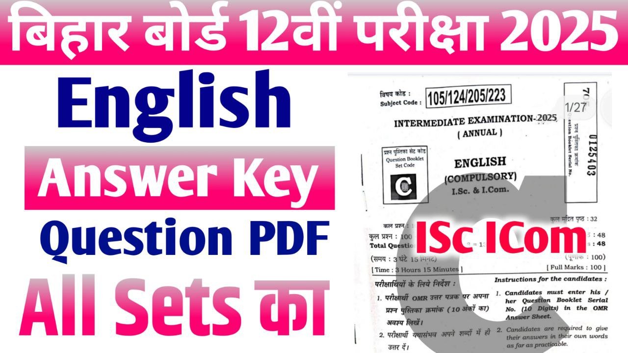 Bihar Board 12th English Answer Key 2025: बिहार बोर्ड 12वीं अंग्रेज़ी प्रशन पत्र एवं उतर यहाँ देखे सेट A से J तक Direct Link:-