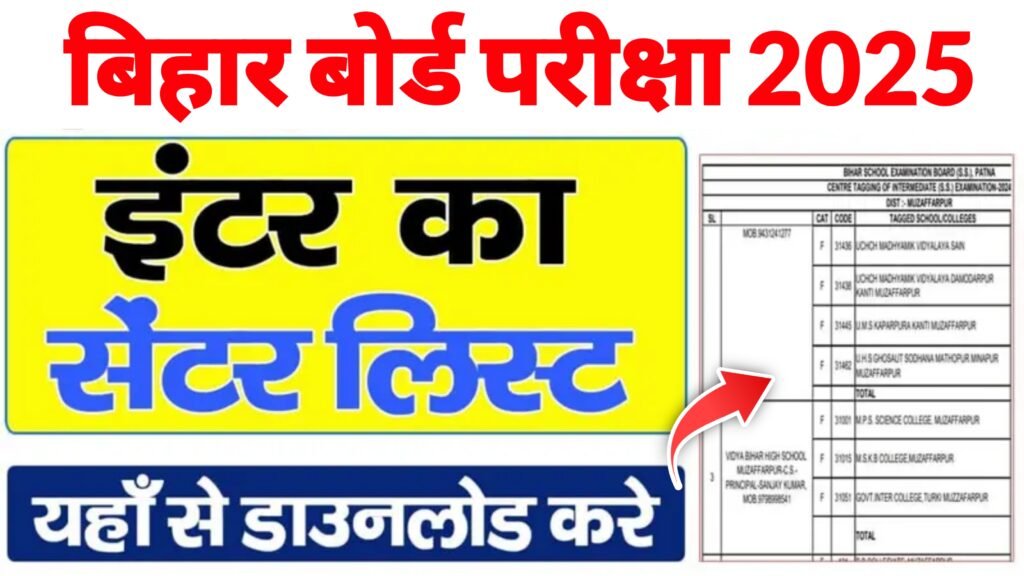 Bihar Board 12th Exam Center List 2025: बिहार बोर्ड इंटर परीक्षा 2025 का सेंटर लिस्ट जारी, यहां से डाउनलोड करें। नमस्कार दोस्तों अगर आप भी बिहार बोर्ड के तरफ से इंटर की फाइनल परीक्षा 2025 में देने वाले हैं और आप सेंटर लिस्ट का इंतजार कर रहे हैं तो अब आपका इंतजार समाप्त हो चुका … Continue reading Bihar Board 12th Exam Center List 2025: बिहार बोर्ड इंटर परीक्षा 2025 का सेंटर लिस्ट जारी, यहां से डाउनलोड करें