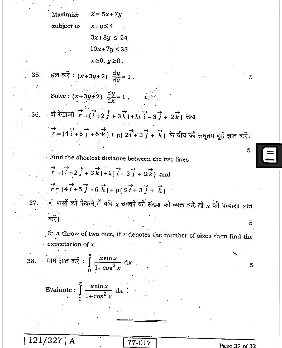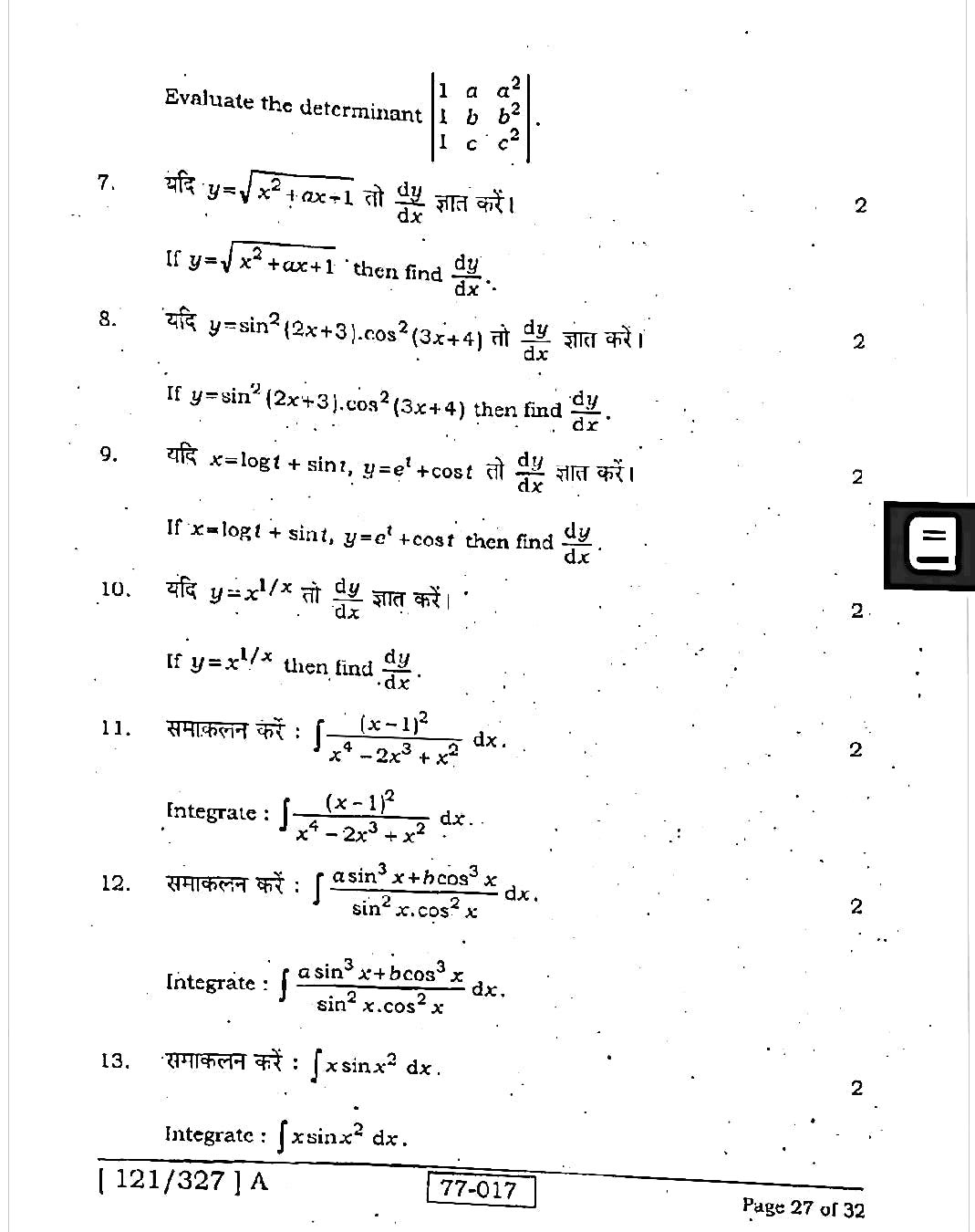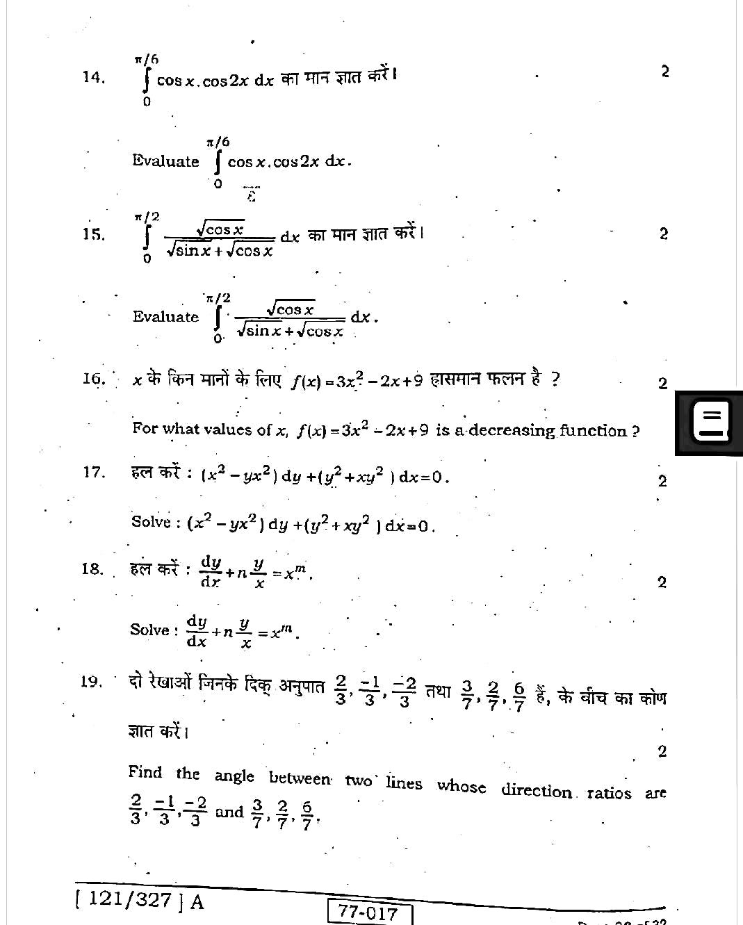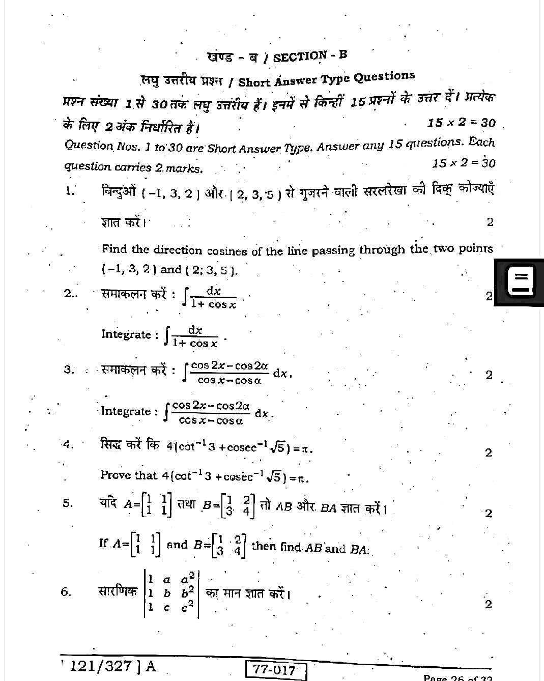 | Bihar board 12th Math 3 February Exam Viral Question paper 2026 | download |