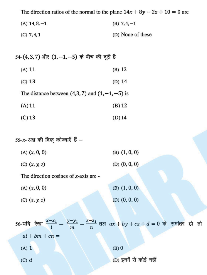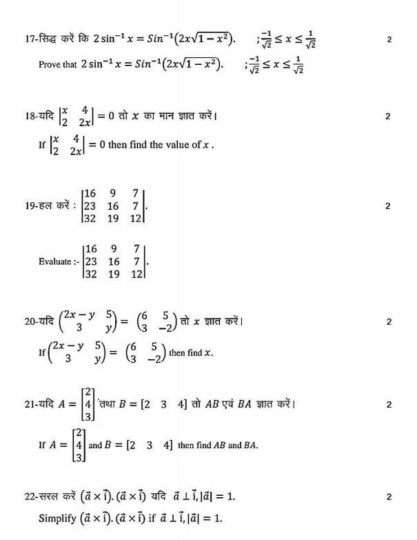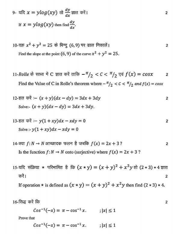 Bihar Board 12th Maths 3 February Exam Viral Question 2026:-