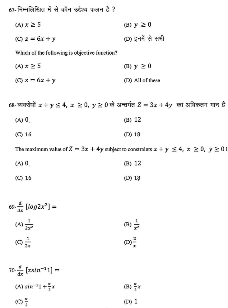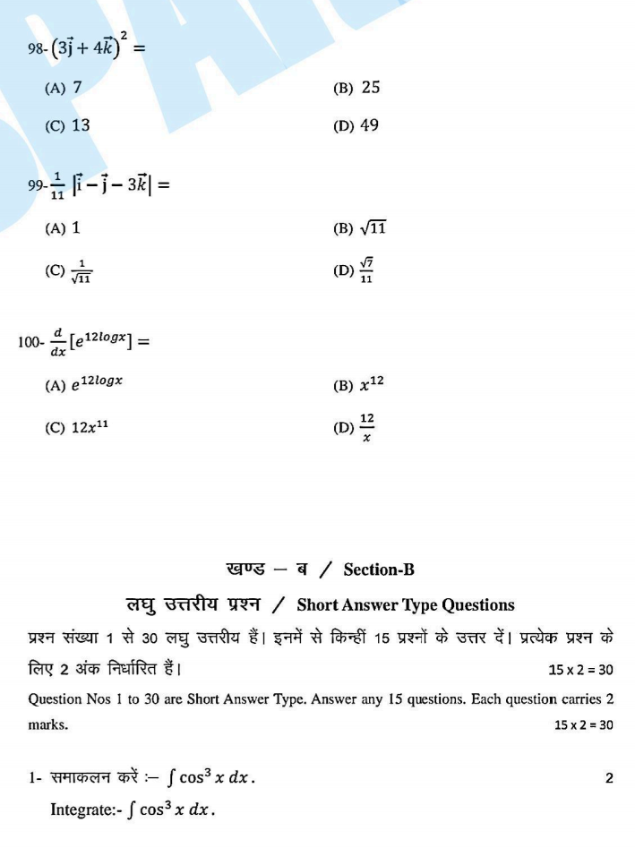 नीचे आप सभी विद्यार्थी देख सकते हैं कि आपको गणित का वायरल क्वेश्चन पेपर दिया गया है जिसमें सब ऑब्जेक्टिव प्रश्न दिए गए हैं वही लघु उत्तरीय प्रश्न और दिर्घ को तरिया प्रश्न में भी दिए गए हैं आप सभी प्रश्नों को एक बार रिवीजन कर लीजिए क्योंकि इसी में से अधिकतम प्रश्न आपके बोर्ड परीक्षा में पूछे जाएंगे