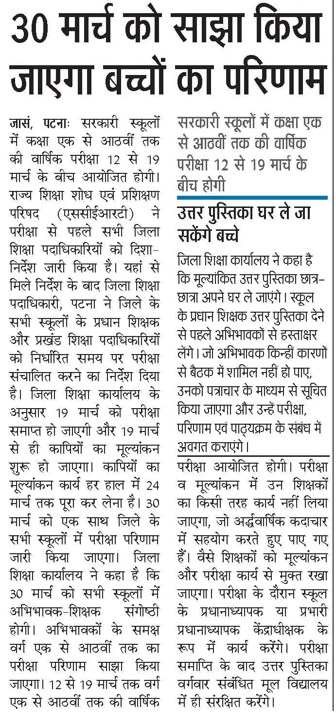 बिहार बोर्ड के तरफ से जितने भी विद्यार्थी मैट्रिक की फाइनल परीक्षा पास कर चुके हैं आप सभी के लिए खुशखबरी की बात है आपको बतला दे की 30 मार्च को आप सभी विद्यार्थियों का रिजल्ट जारी कर दिया जाएगा जी हां दोस्तों 15 लाख से ज्यादा विद्यार्थी मैट्रिक फाइनल परीक्षा में शामिल हुए थे आप सभी विद्यार्थियों का रिजल्ट 30 मार्च को जारी कर दिया जाएगा कैसे रिजल्ट चेक करना है चेक करने का लिंक इस आर्टिकल में हम आपको देने वाले हैं