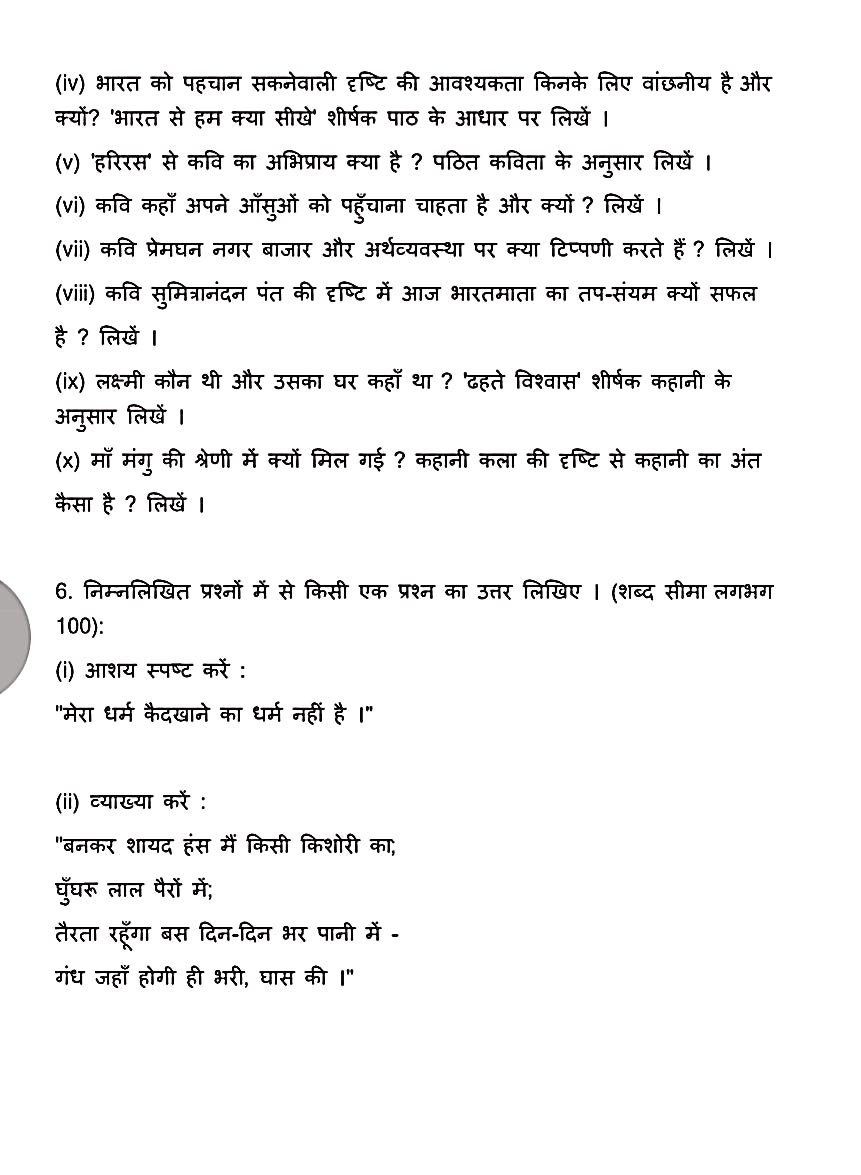 Bihar board Class 10th 17 February Hindi-2st Sitting Out Question paper:-