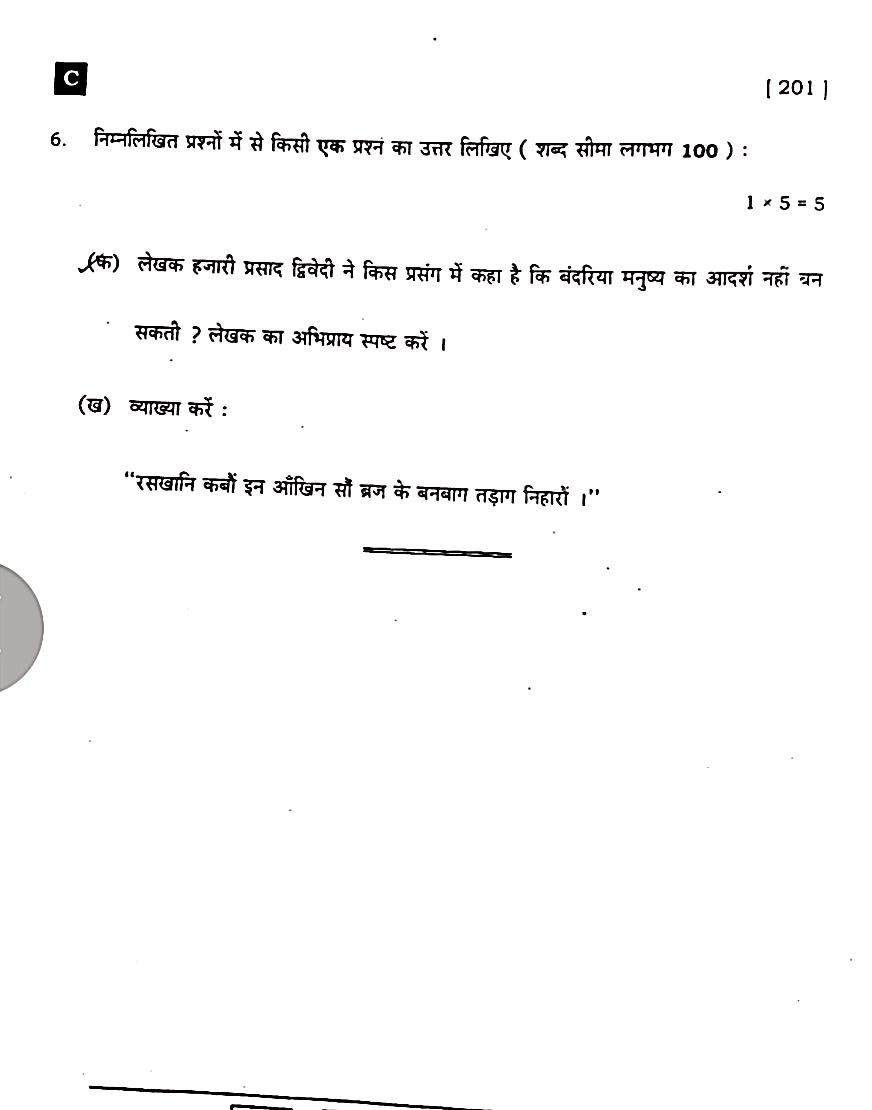Bihar board Class 10th 17 February Hindi 1st Sitting Out Question paper:-