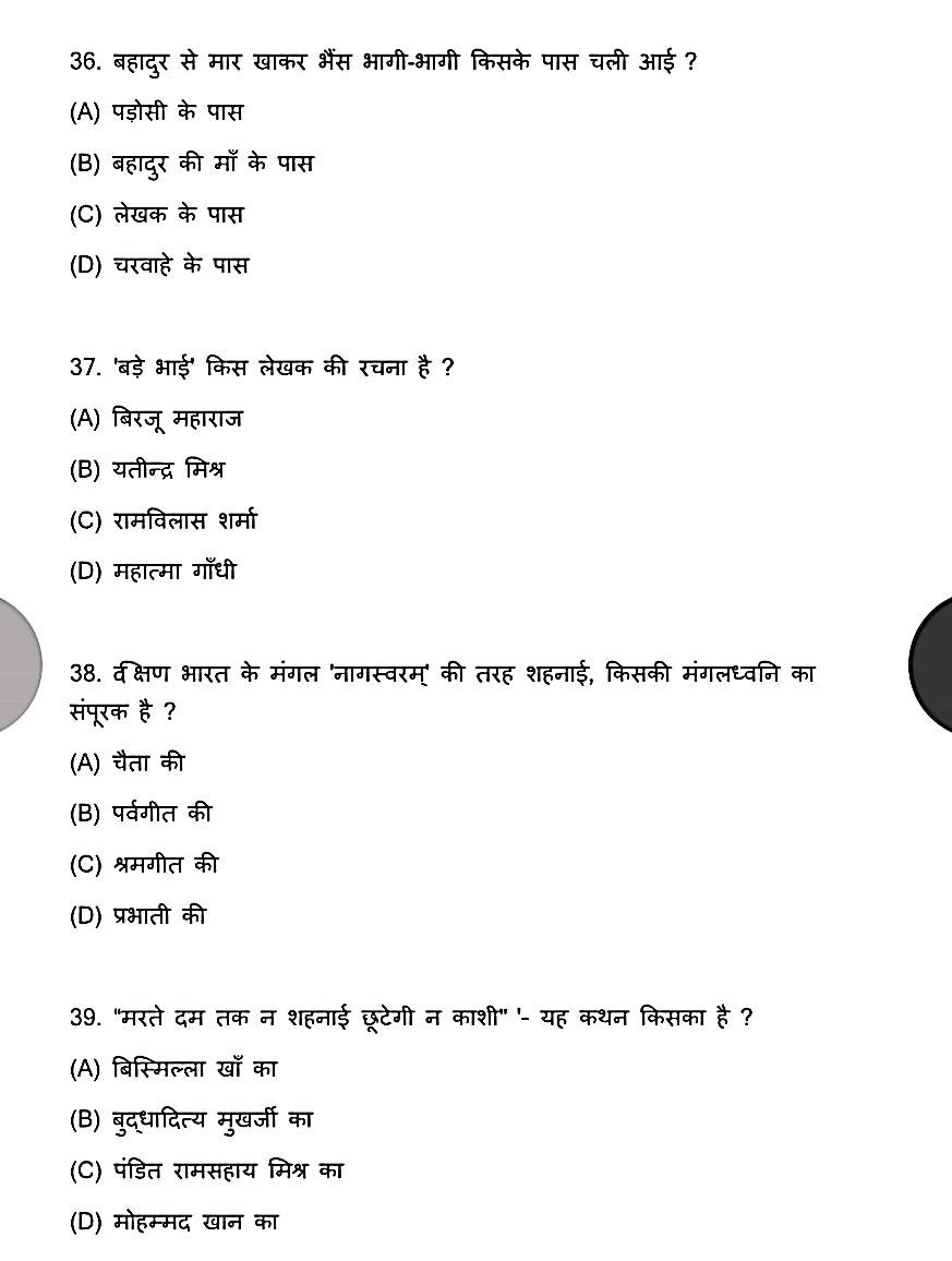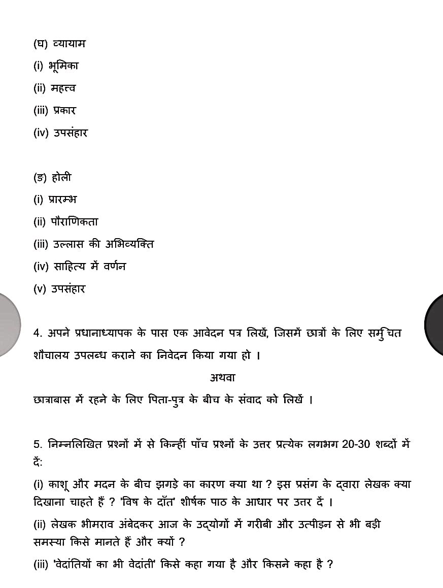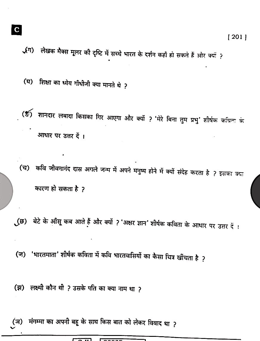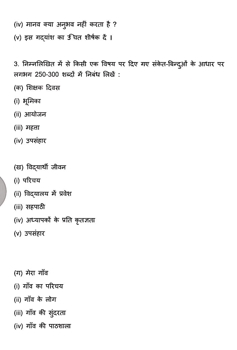 Bihar board Class 10th 17 February Hindi-2st Sitting Out Question paper:-
