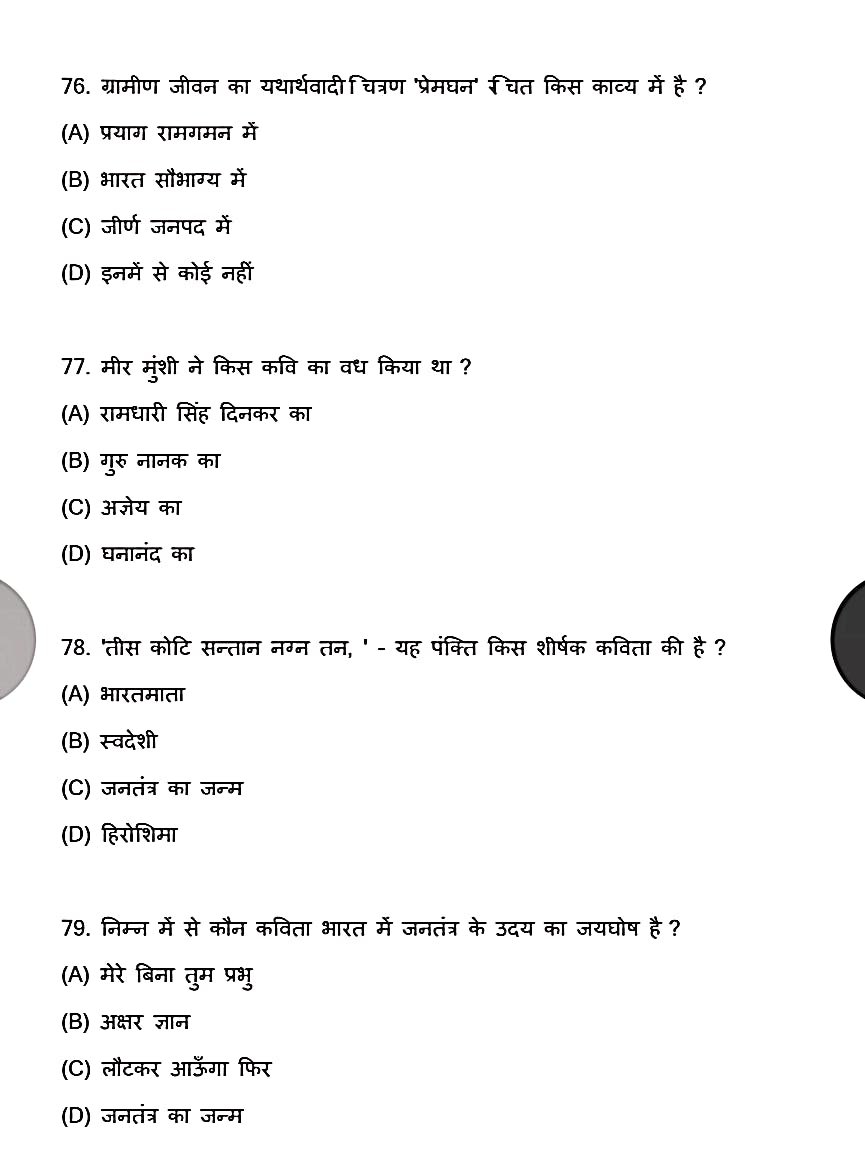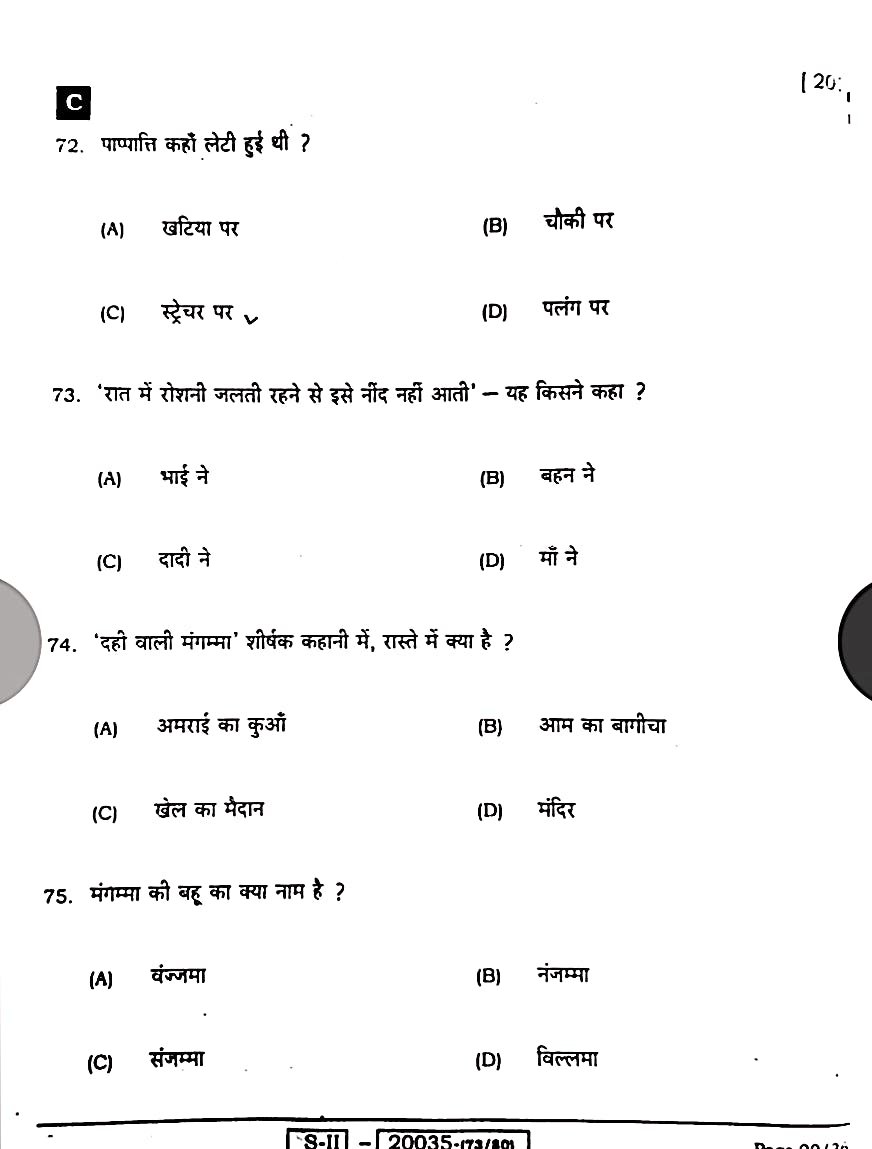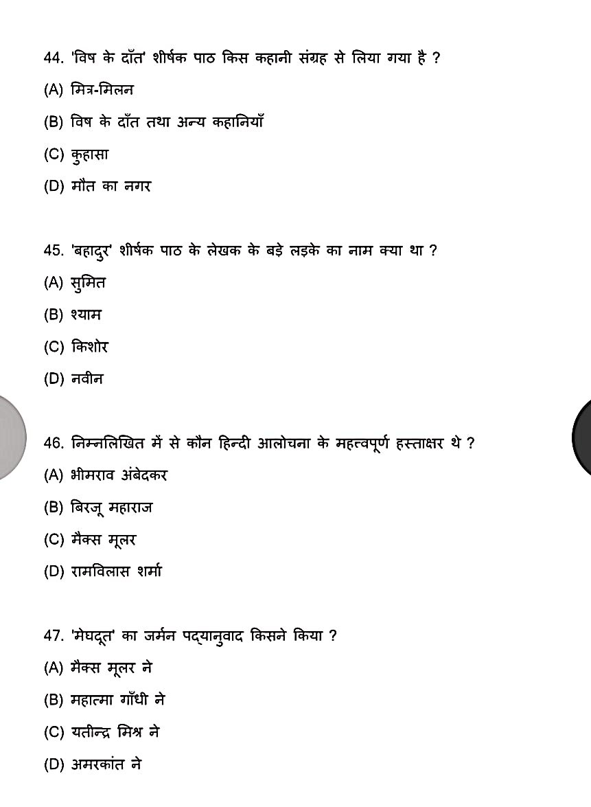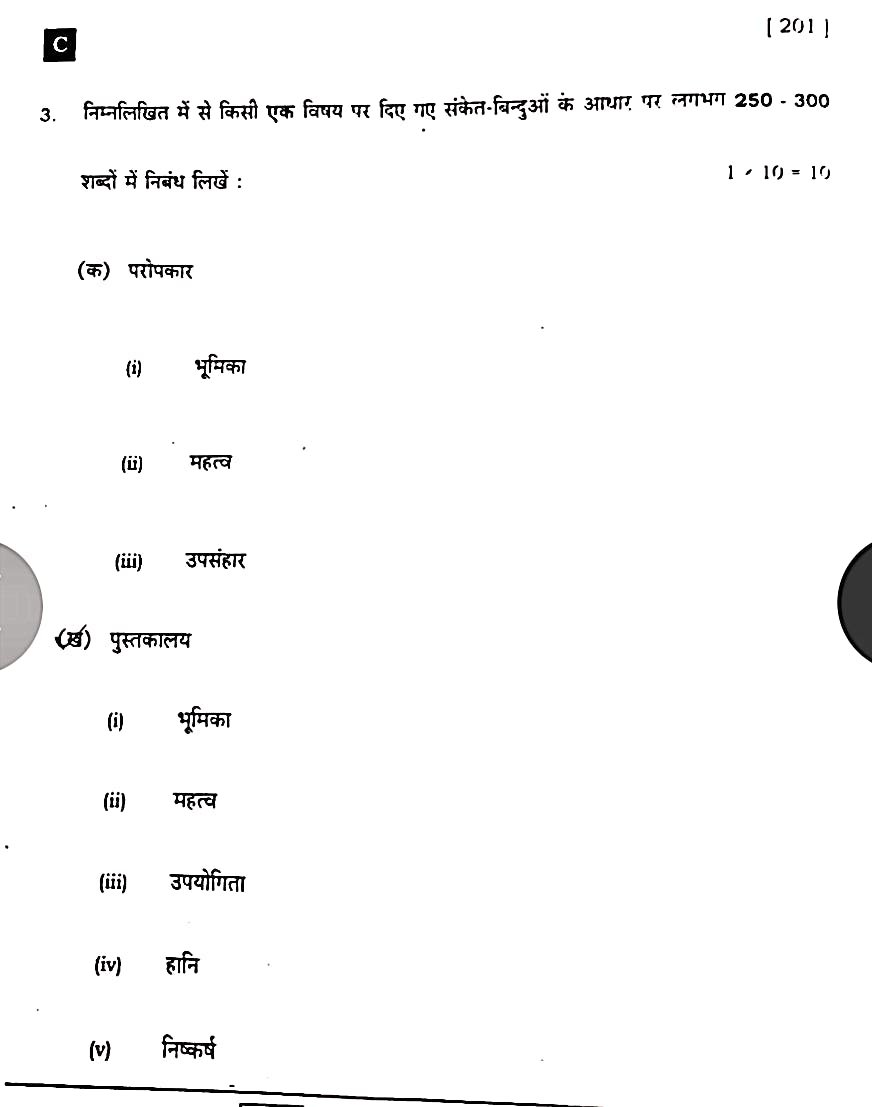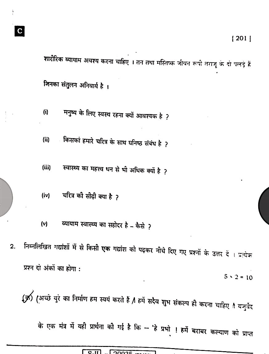 Bihar board Class 10th 17 February Hindi-2st Sitting Out Question paper:-