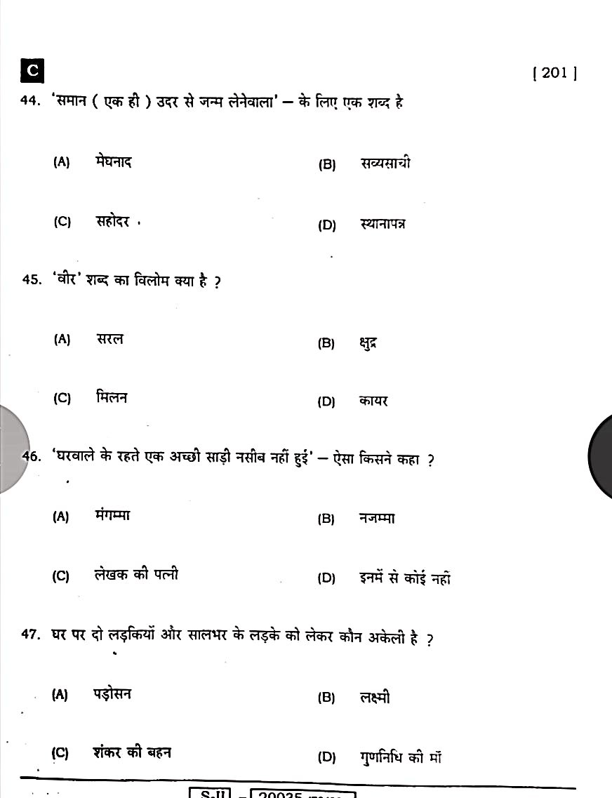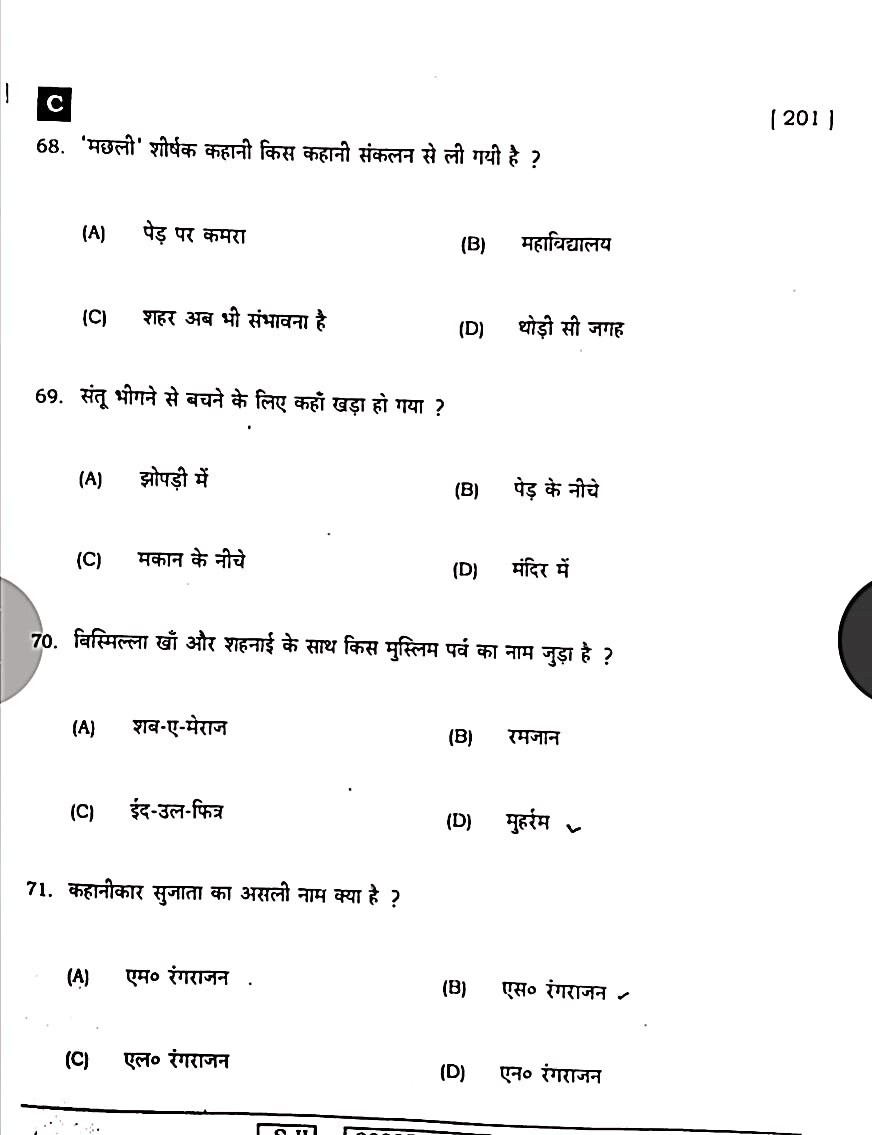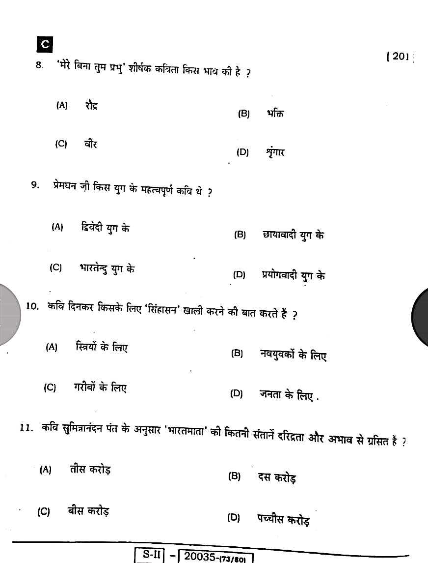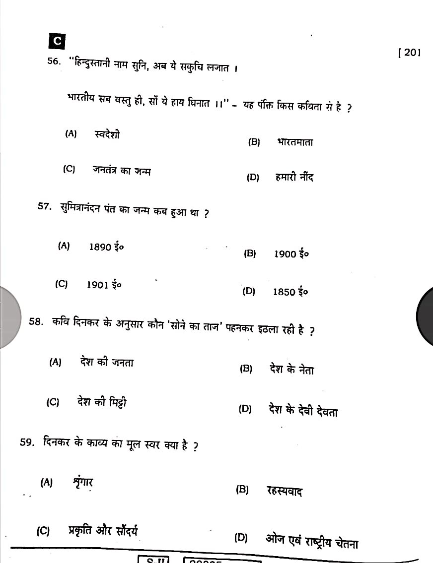 Bihar board Class 10th 17 February Hindi-2st Sitting Out Question paper:-