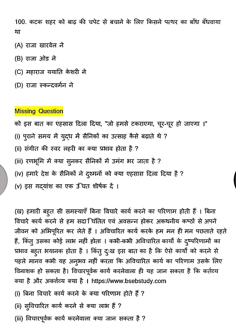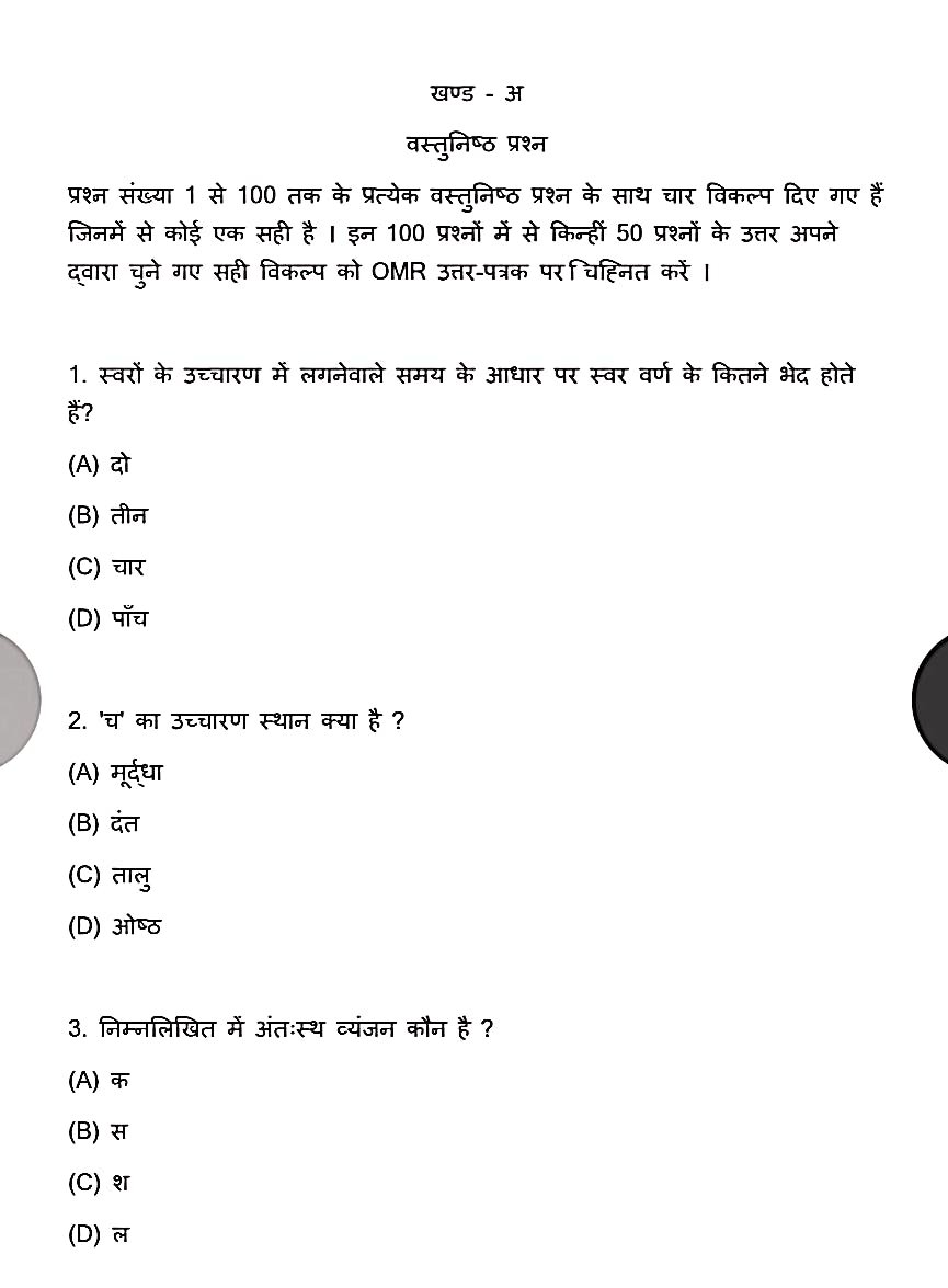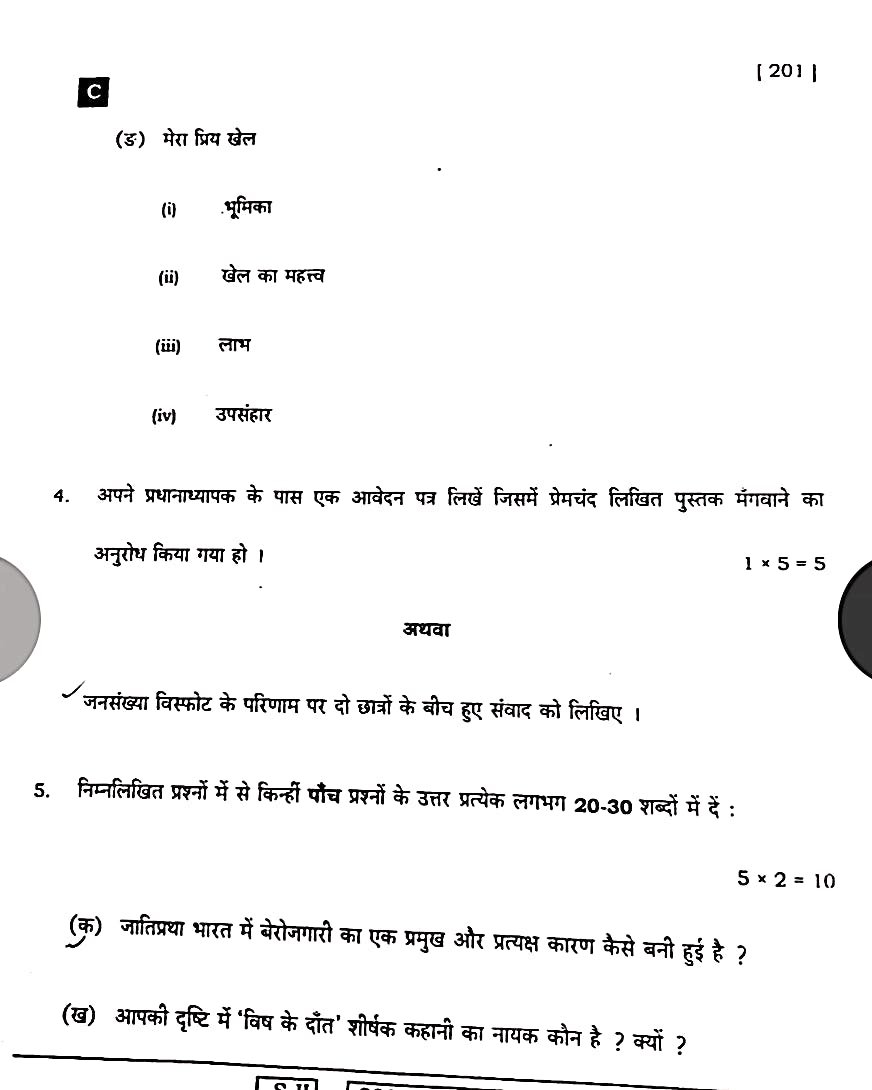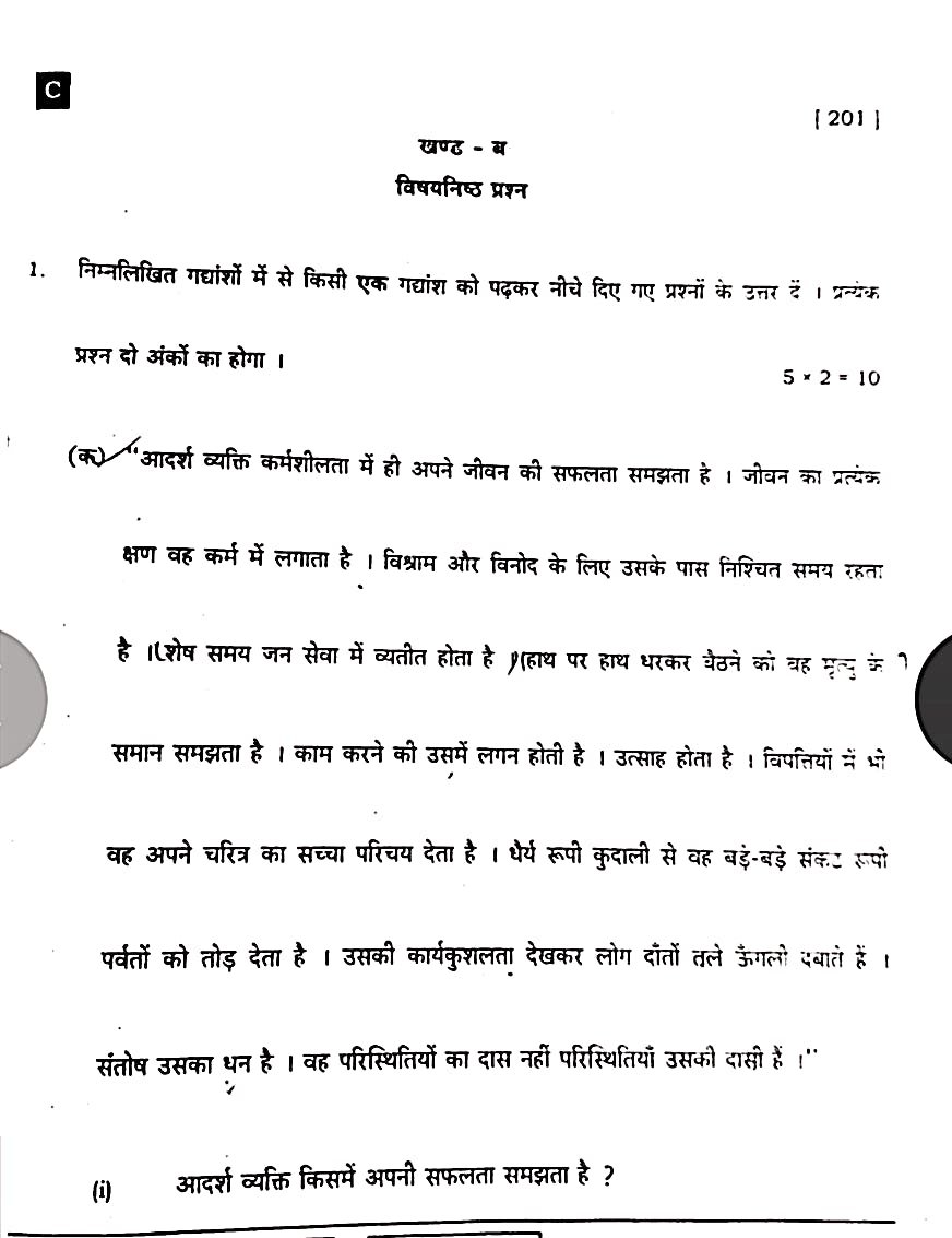 Bihar board Class 10th 17 February Hindi 1st Sitting Out Question paper:-