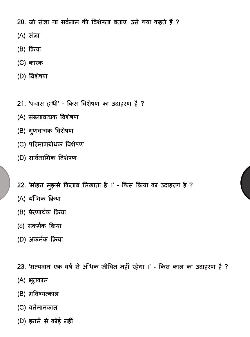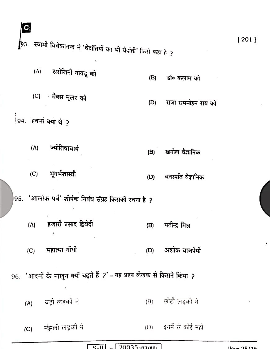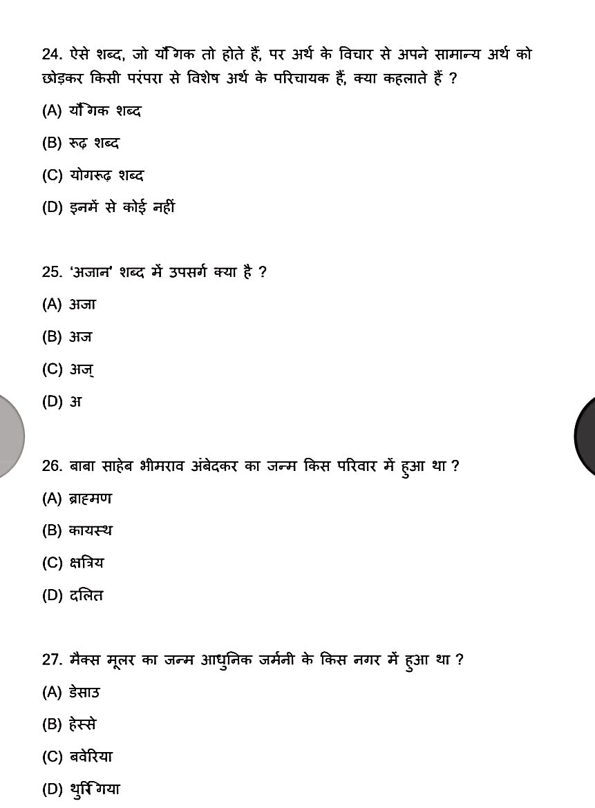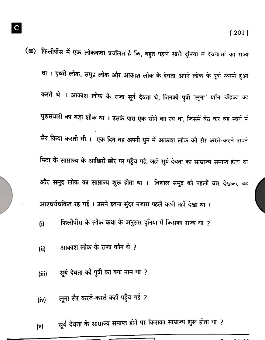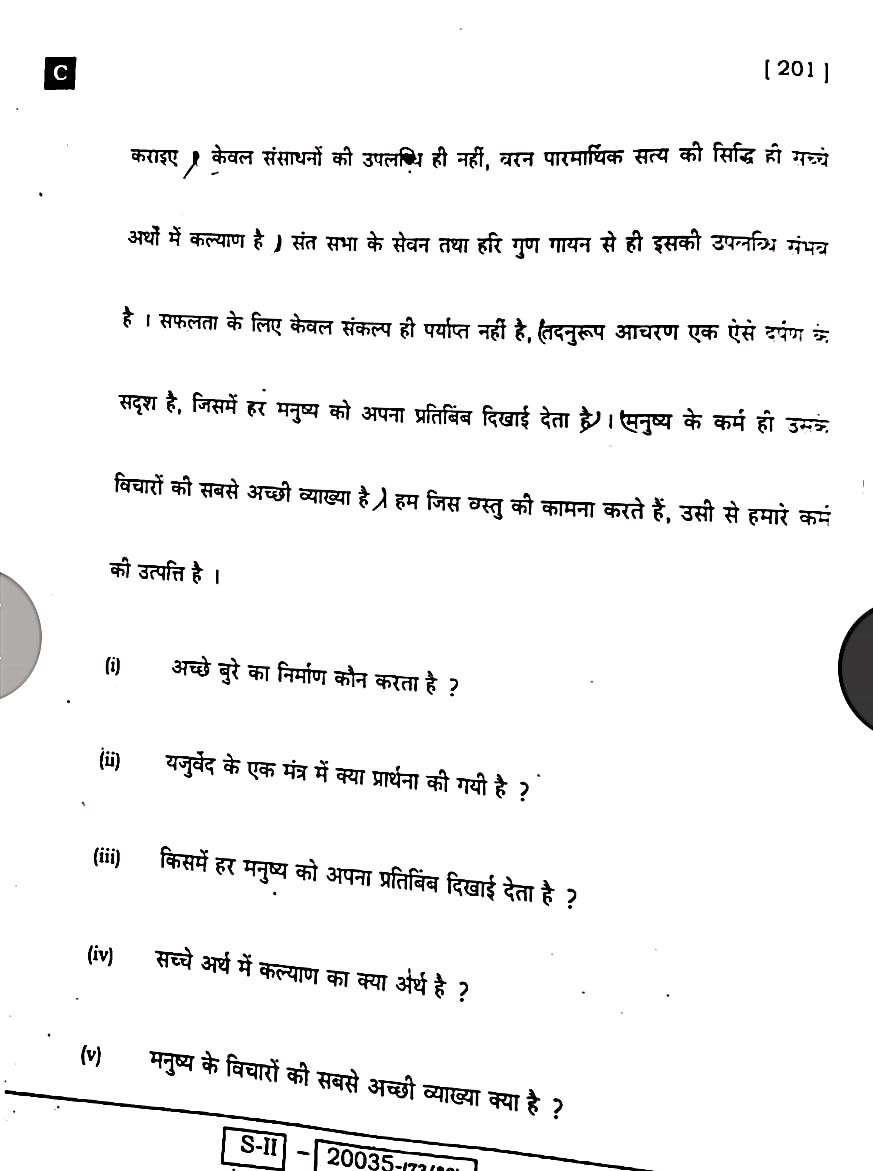 Bihar board Class 10th 17 February Hindi 1st Sitting Out Question paper:-