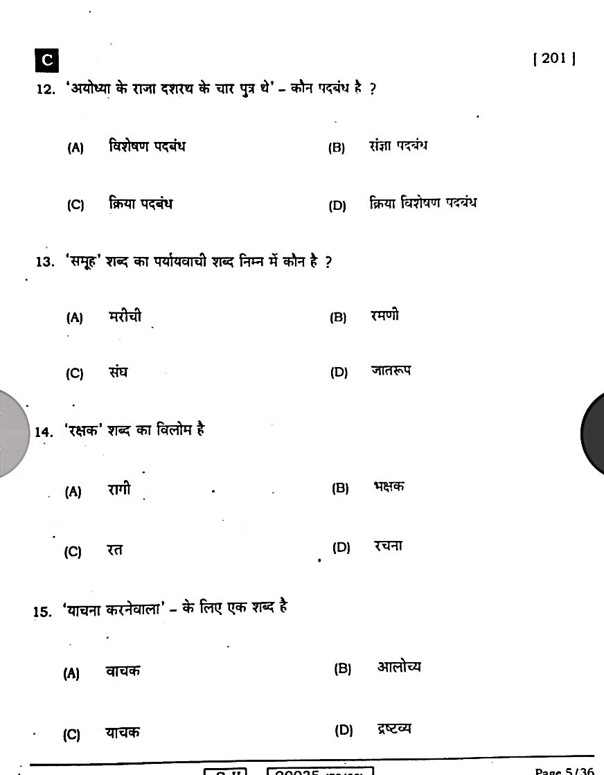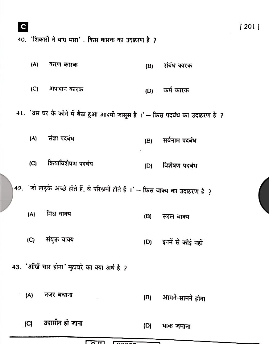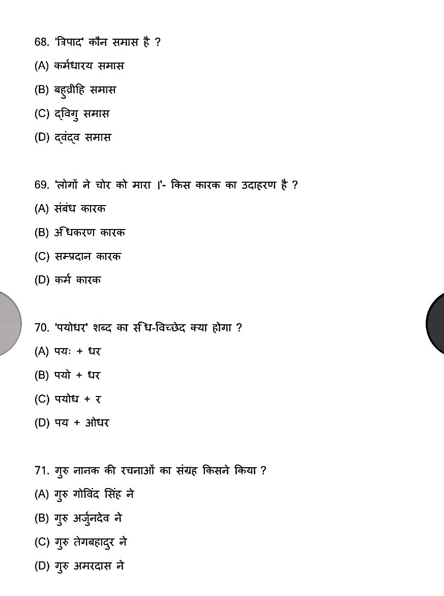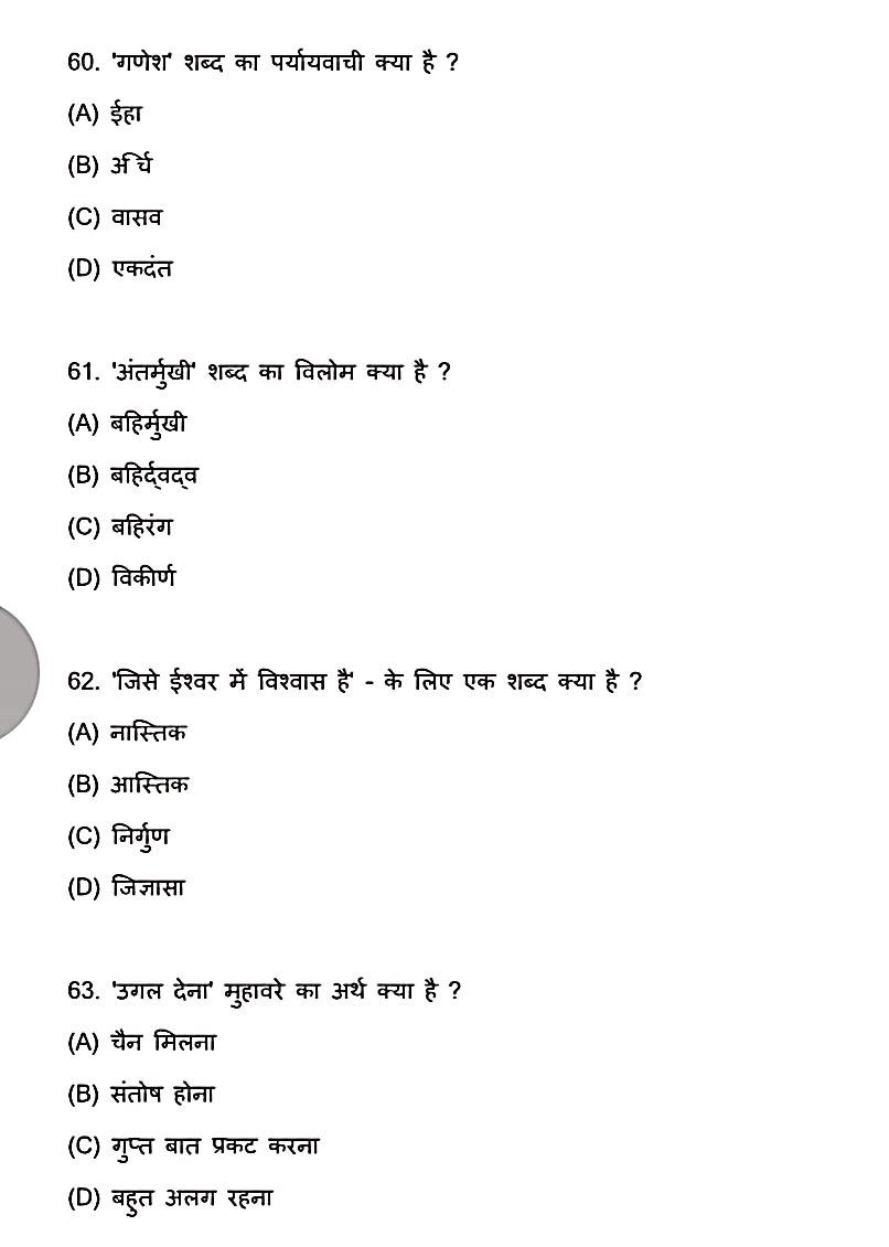 Bihar board Class 10th 17 February Hindi 1st Sitting Out Question paper:-