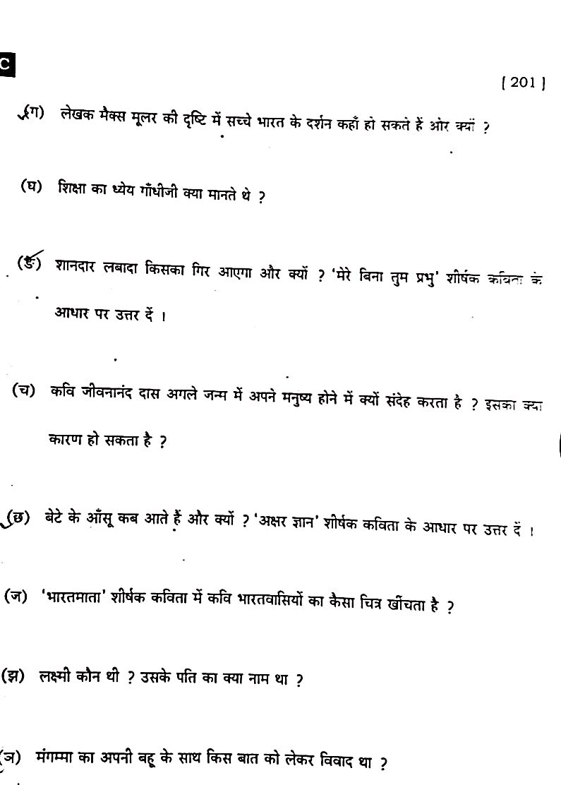 दोस्तों 17 फरवरी के लिए मैट्रिक के जो भी विद्यार्थी प्रथम पाली में हिंदी का पेपर देने जा रहे हैं उसका कुछ वायरस क्वेश्चन पेपर मेरे पास आया है जो कि नीचे निम्नलिखित देख सकते हैं दिया गया है इन सभी प्रश्नों को आप पेपर में बैठने से पहले एक बार याद कर लीजिए क्योंकि इसमें से ज्यादातर प्रश्न आपके बोर्ड परीक्षा में पूछे जाने के चांस है तो आप लोग जल्द से जाकर याद कर लीजिए नीचे जो भी प्रश्न को दिया गया हैं।
