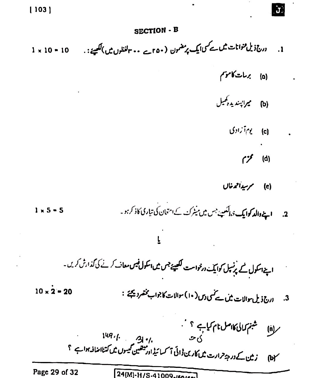Bihar board Class 10th 17 February Urdu Viral Question paper:-