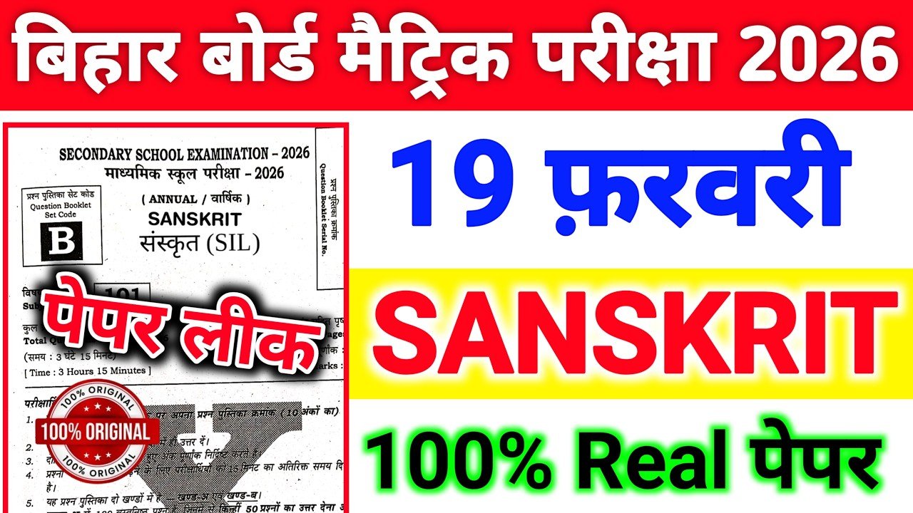 Bihar Board Class 10th 19 February Sanskrit Viral Question paper 2026: बिहार बोर्ड मैट्रिक 19 फरवरी के लिए संस्कृत का वायरल क्वेश्चन पेपर आ गया, यही आएगा।