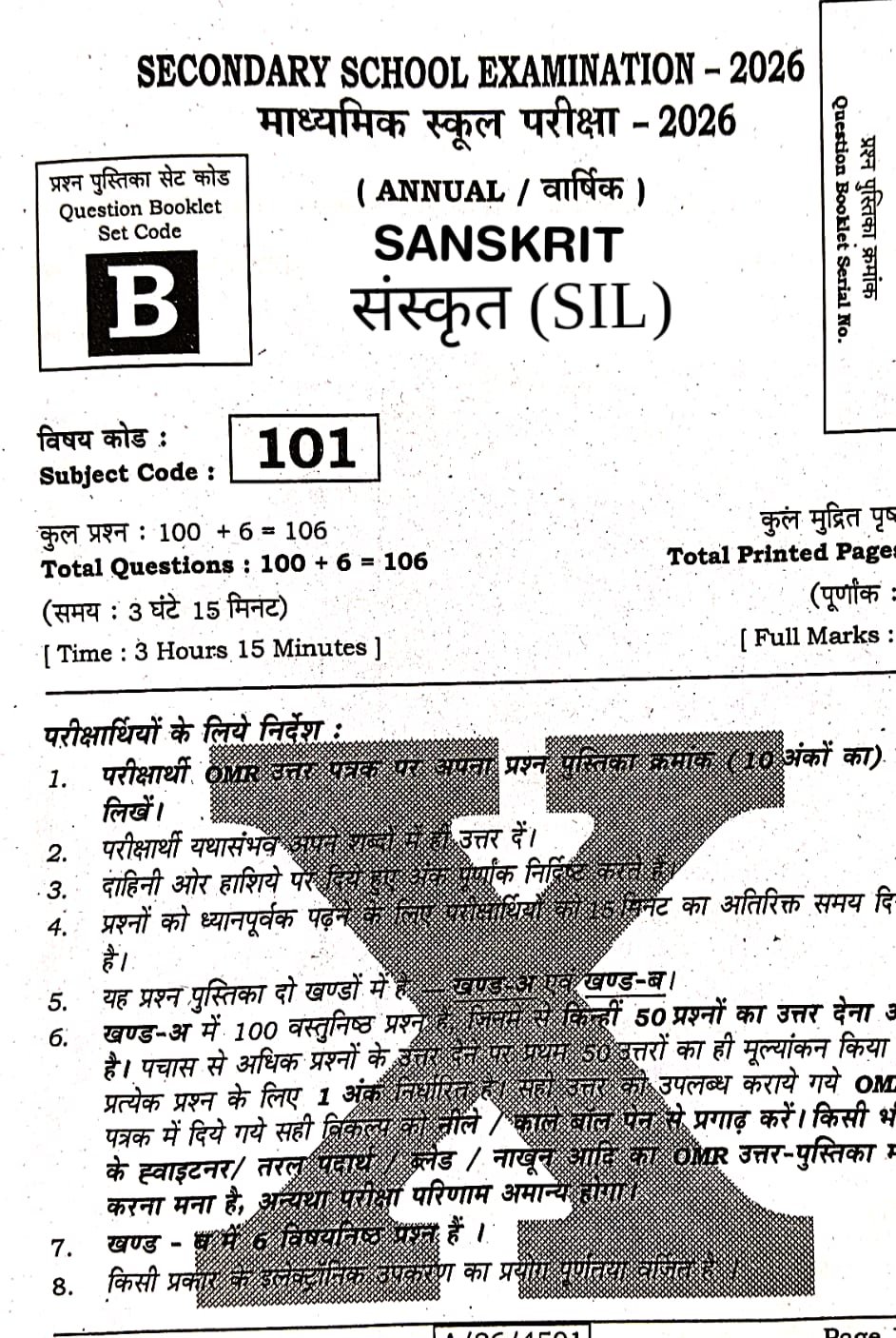Bihar Board Class 10th 19 February Sanskrit Viral Question paper 2026:-
