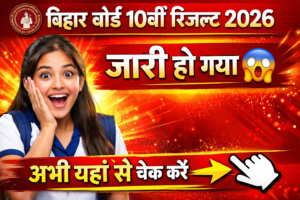 Bihar Board Class 10th Result 2026 jari: बिहार बोर्ड मैट्रिक रिजल्ट हुआ जारी, यहाँ से चेक करने का लिंक प्राप्त करें। आप भी बिहार बोर्ड मैट्रिक रिजल्ट जारी होने का इंतजार कर रहे हैं तो आपके लिए एक बहुत ही बड़ी खुशखबरी है आपका इंतजार समाप्त हो चुका है आप सभी विद्यार्थी अपना अपना रोल … Continue reading Bihar Board Class 10th Result 2026 jari: बिहार बोर्ड मैट्रिक रिजल्ट हुआ जारी, यहाँ से चेक करने का लिंक प्राप्त करें।