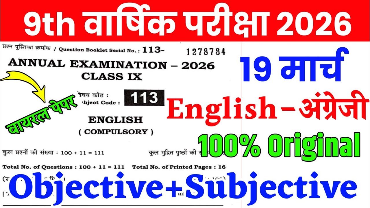 19 मार्च के दिन 9th क्लास के विद्यार्थियों का द्वितीय पाली में अंग्रेजी का पेपर आयोजित होने वाला है और हमें पता है कि आप सभी विद्यार्थी अंग्रेजी में काफी कमजोर है तो आपको चिंता करने की कोई जरूरत नहीं है अगर आप इस आर्टिकल में आए हैं तो आप आर्टिकल में बने रहिएगा क्योंकि हम आपको इस आर्टिकल के माध्यम से अंग्रेजी का जो वायरल क्वेश्चन है उसका आंसर की देने वाले हैं ऑब्जेक्टिव प्रश्न और सब्जेक्टिव प्रश्न दोनों का जिस प्रकार आपको पिछले सब्जेक्ट का दिया गया था उसी प्रकार अंग्रेजी का भी दिया जाएगा तो आप हमारे साथ अंत तक बने रहिए
