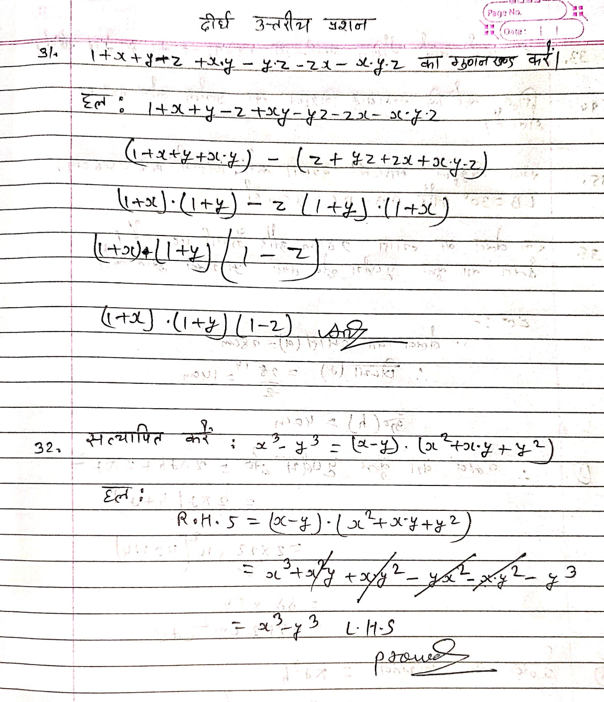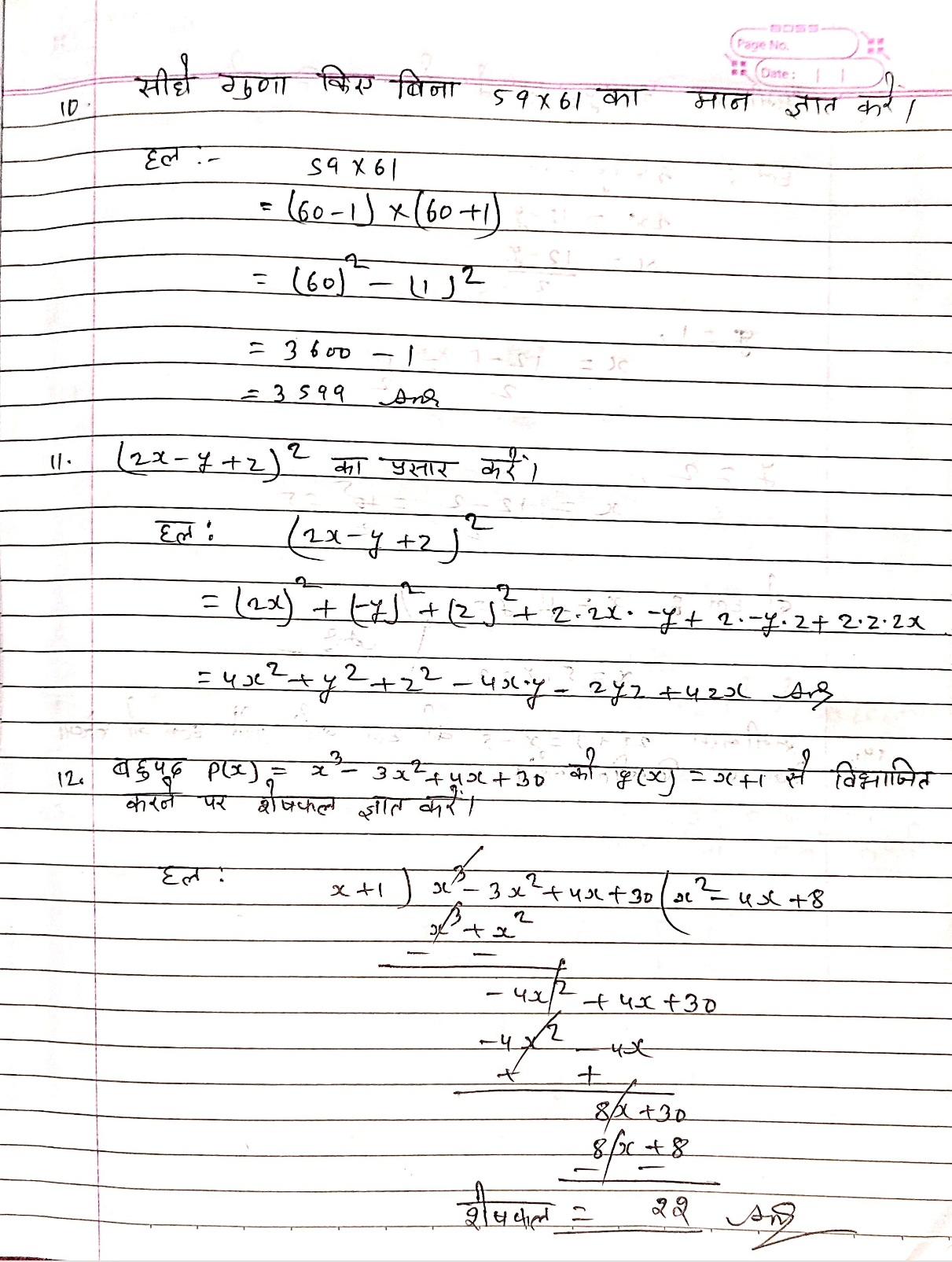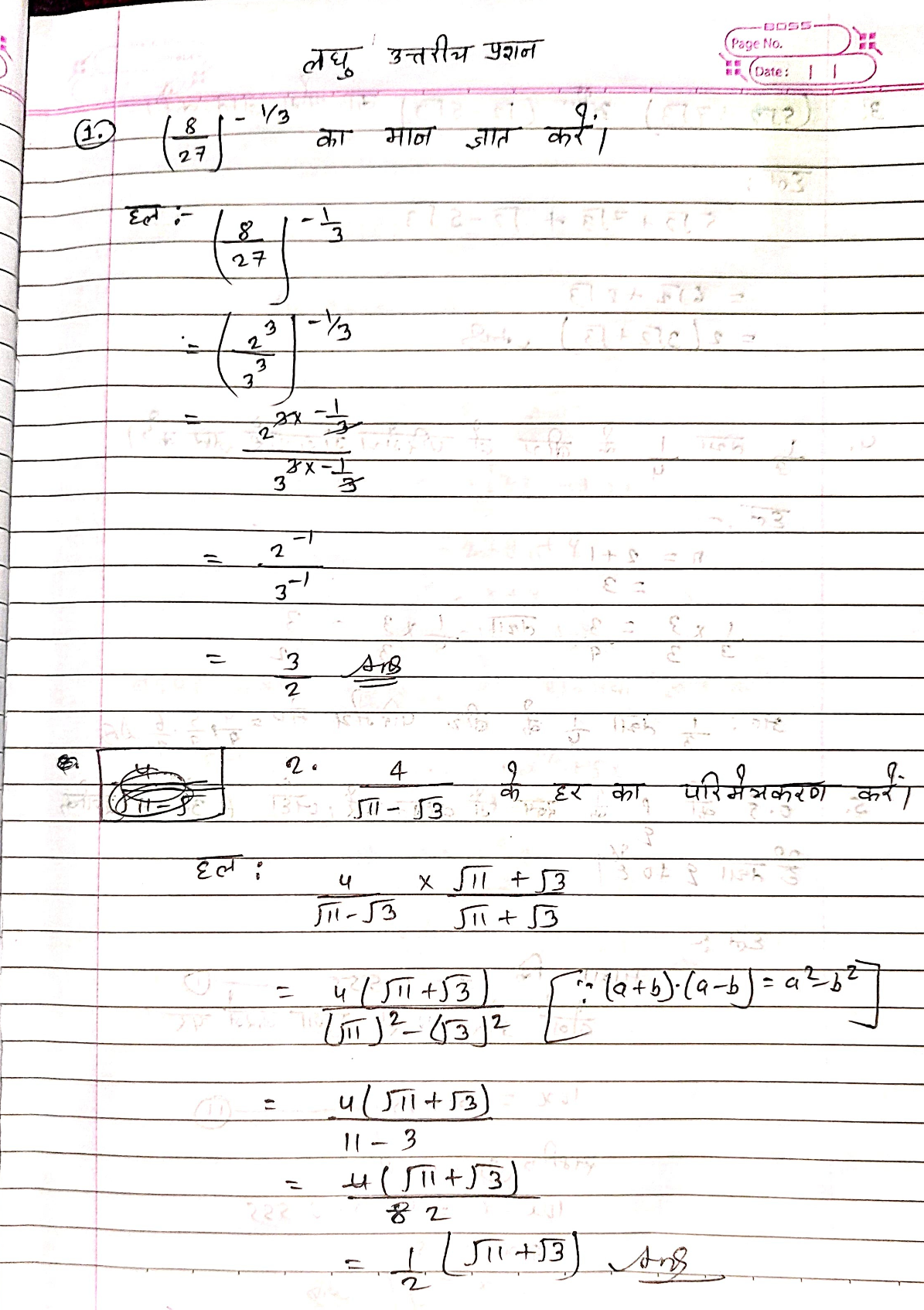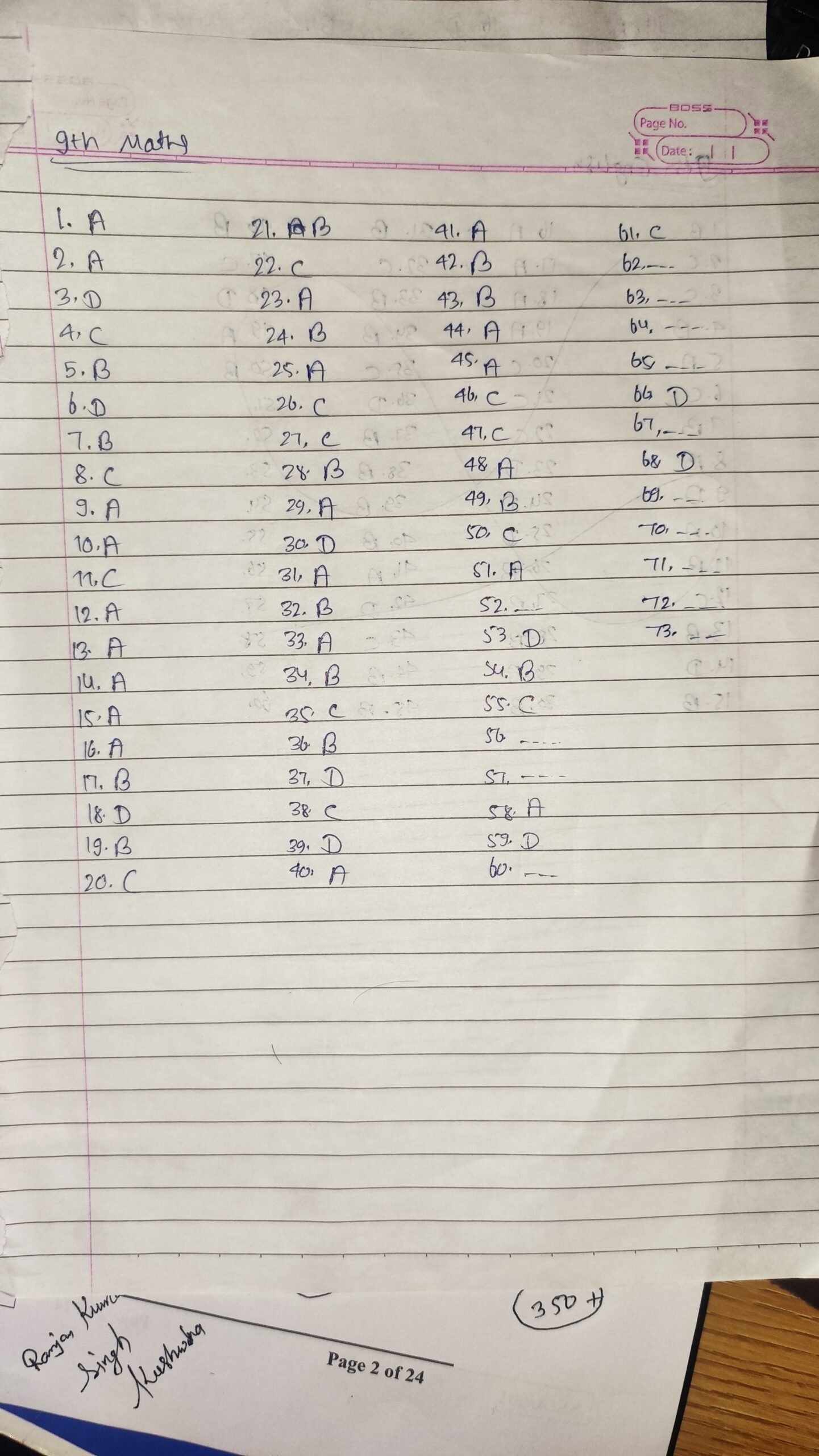 Bihar board class 9th 19 march Maths answer key 2026:-