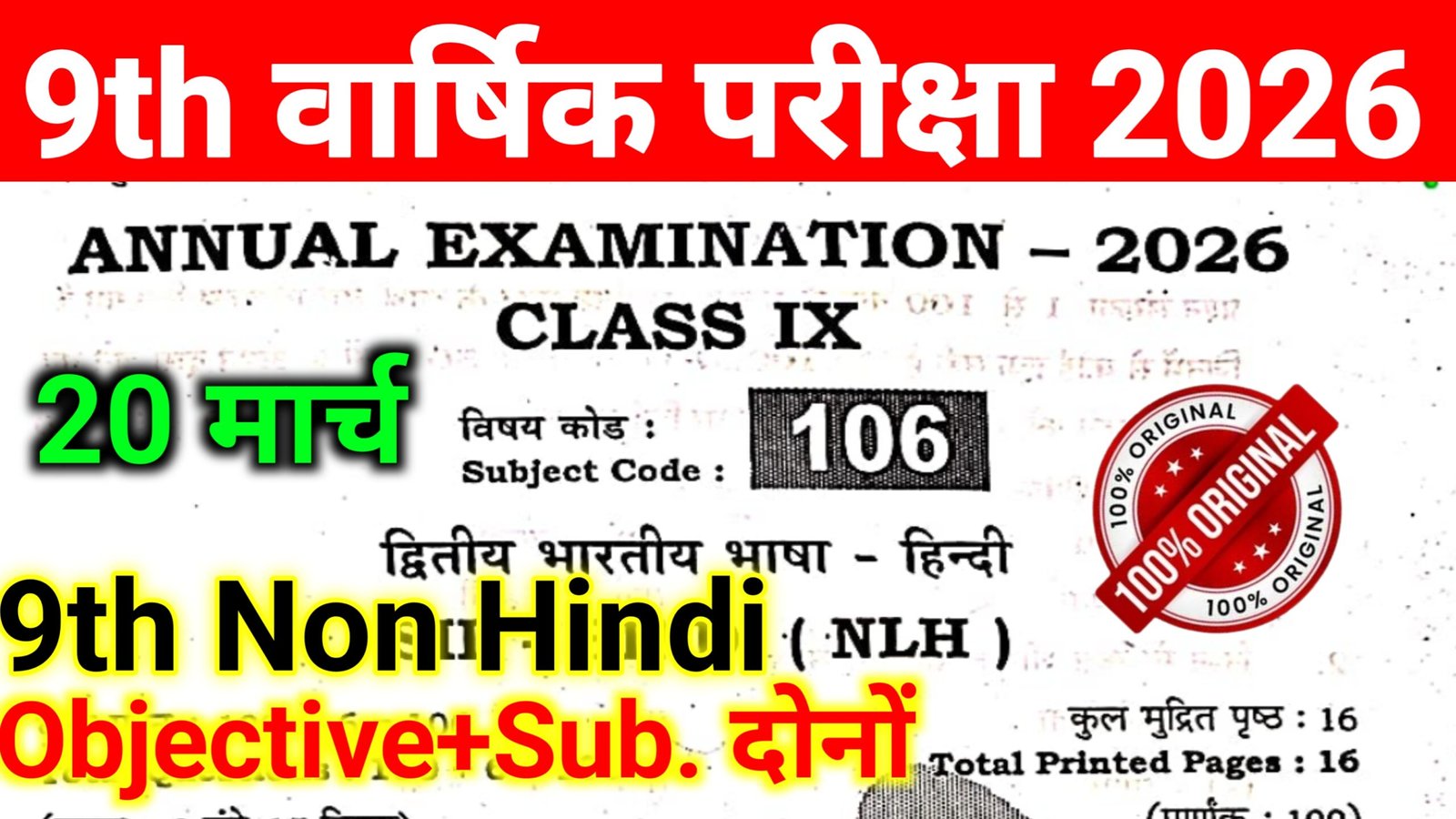 | class 9th 20 march Non-Hindi objective answer key 2026 | Download |