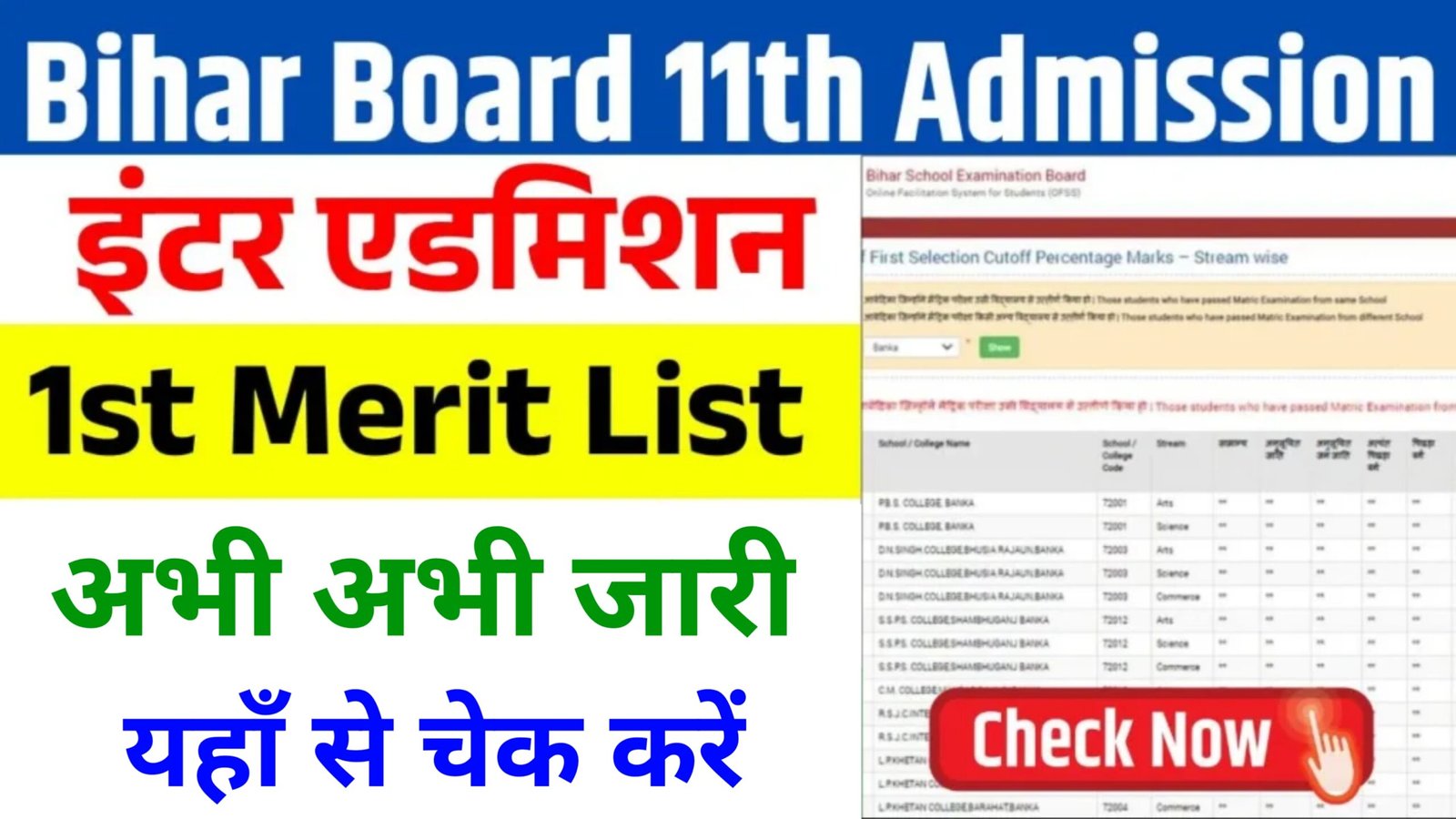 Bihar Board Inter 1st Merit List 2025 jari: इंटर एडमिशन प्रथम मेरिट लिस्ट जारी, यहाँ से चेक करें:-