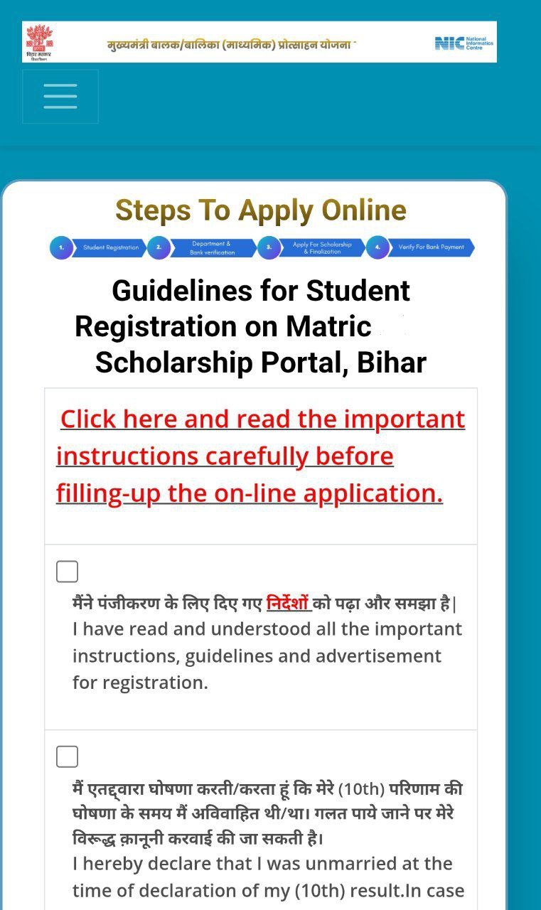 Bihar Board Matric Pass Scholarship 2025 Apply onlineclick here
