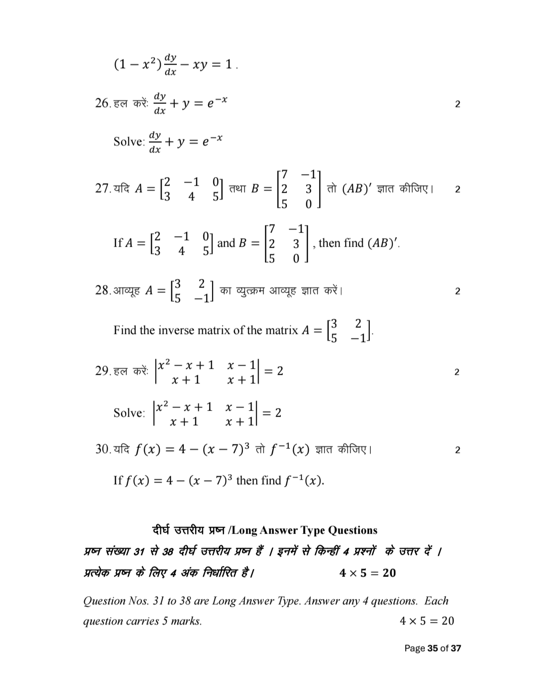 दोस्तों इस आर्टिकल के माध्यम से आप सभी विद्यार्थियों को  3 फरवरी के लिए प्रथम पाली में आयोजित होने वाले गणित का वायरल क्वेश्चन बतलाया गया है अगर आप इन सभी प्रश्न को याद कर लेते हैं इसमें सब ऑब्जेक्टिव प्रश्न बतलाया गया है और लघु उत्तरीय प्रश्न एवं दीर्घ उत्तरीय प्रश्न बतलाई गए हैं सभी प्रश्न को याद करते हैं तो इसमें से अधिकतम प्रश्न आपके बोर्ड परीक्षा में पूछे जाएंगे नीचे आपको पीडीएफ डाउनलोड करने का लिंक मिल जाएगा आप वायरल क्वेश्चन का पीडीएफ भी डाउनलोड कर सकते हैं एवं आप हमारे  सोशल मीडिया प्लेटफॉर्म को जरूर फॉलो कर लीजिएगा ताकि आपको वायरल क्वेश्चन मिल सके