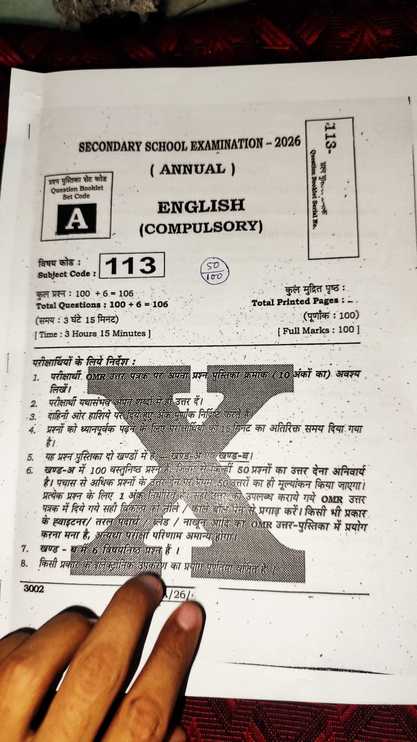 Bihar Class 10th 23 February English Viral Question paper 2026:-