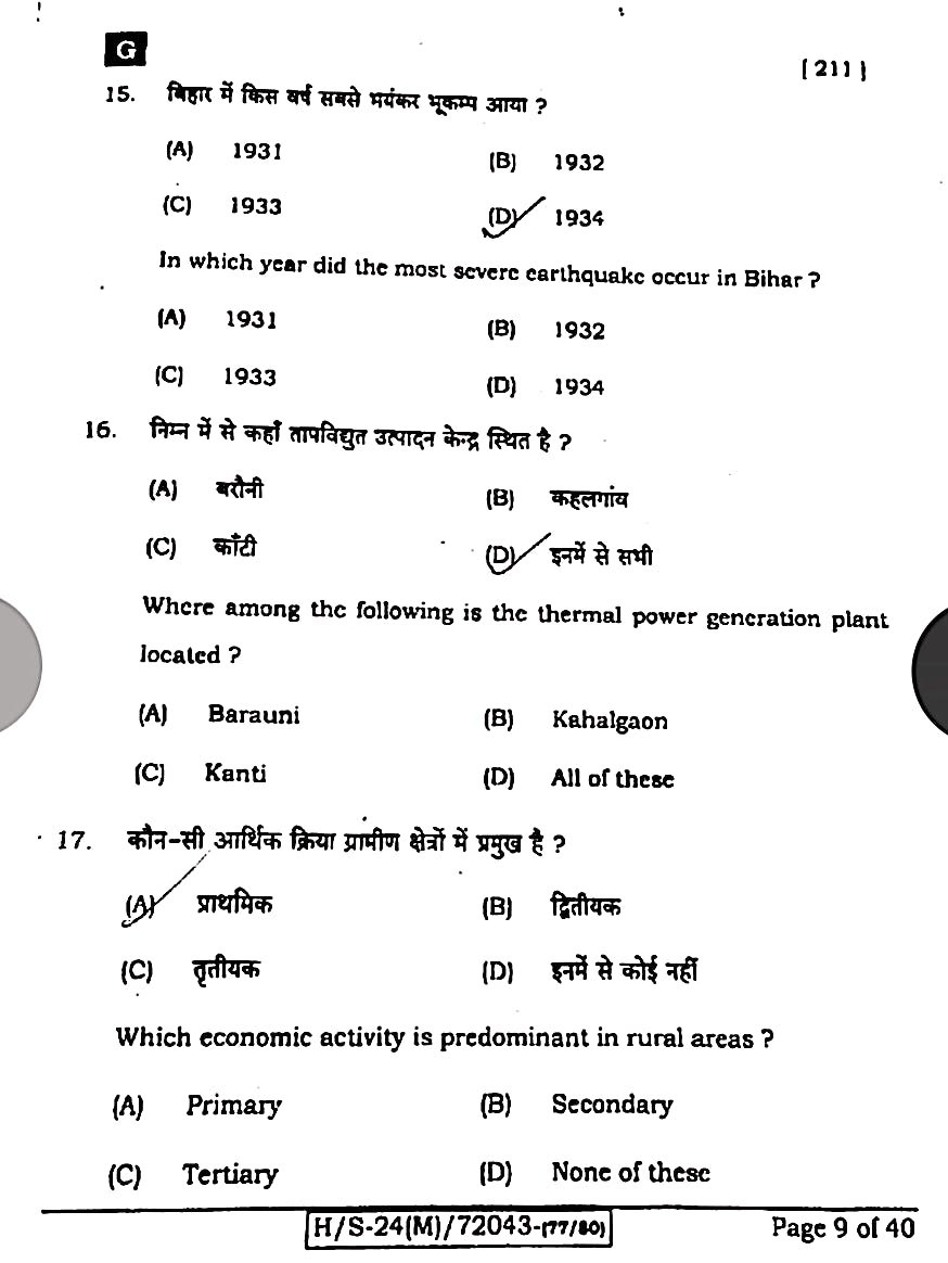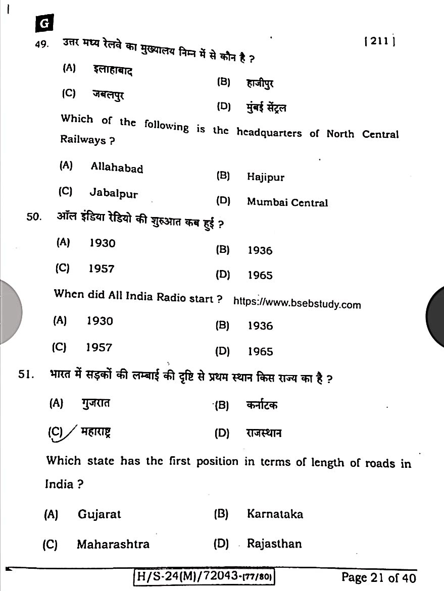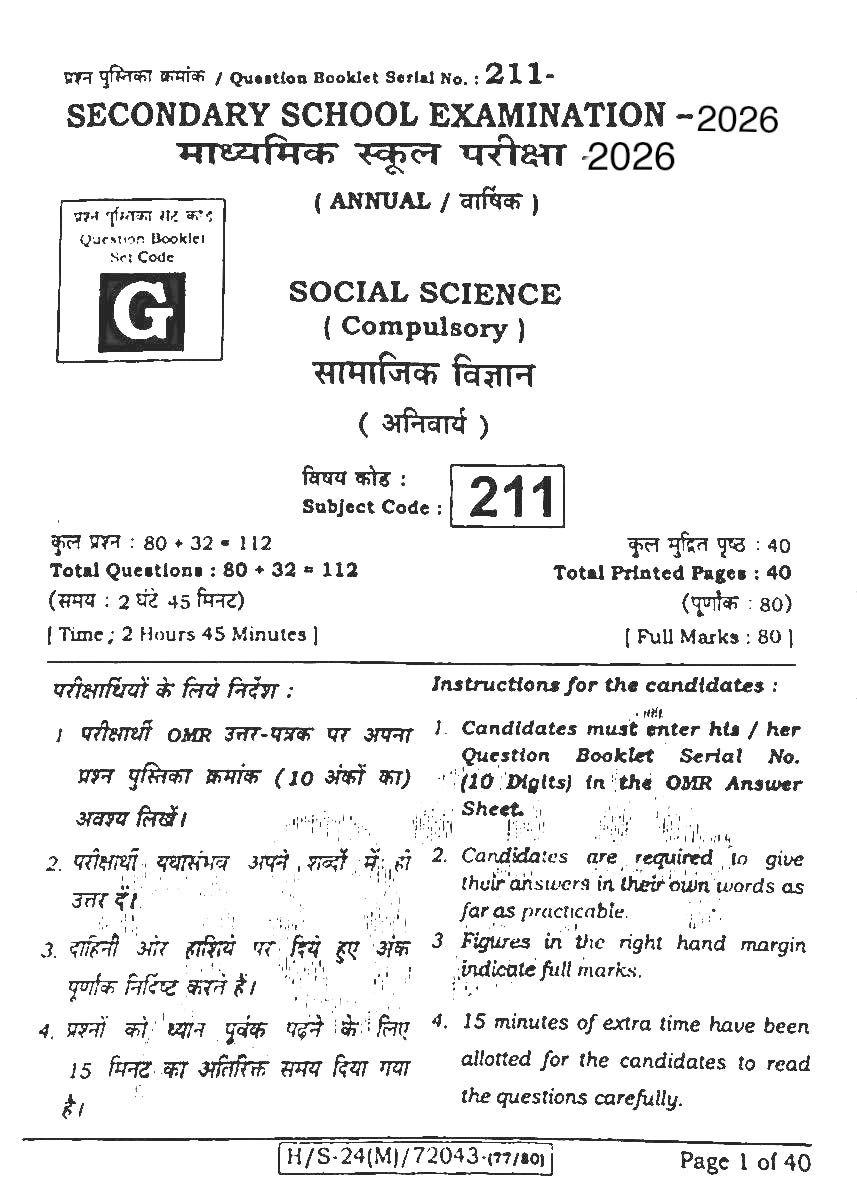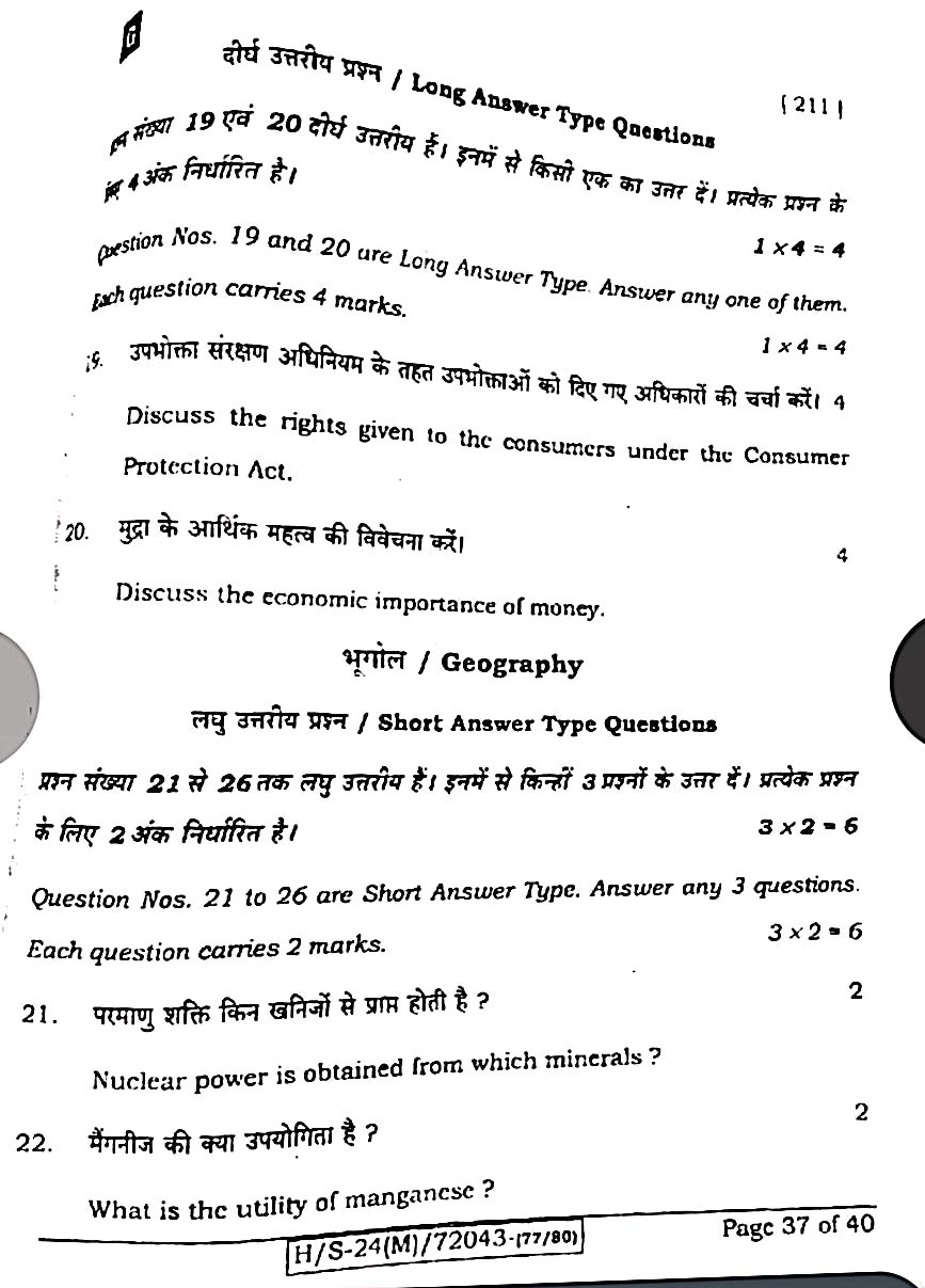 बिहार मैट्रिक 20 फरवरी सामाजिक विज्ञान ओरिजिनल क्वेश्चन पेपर:-