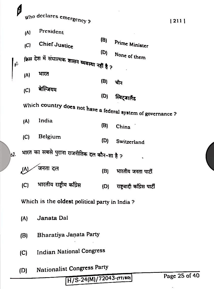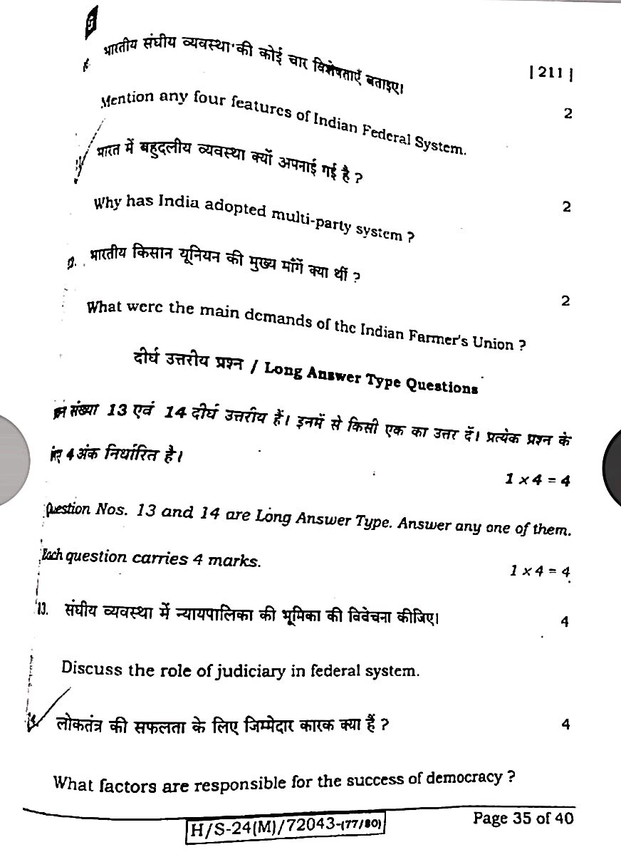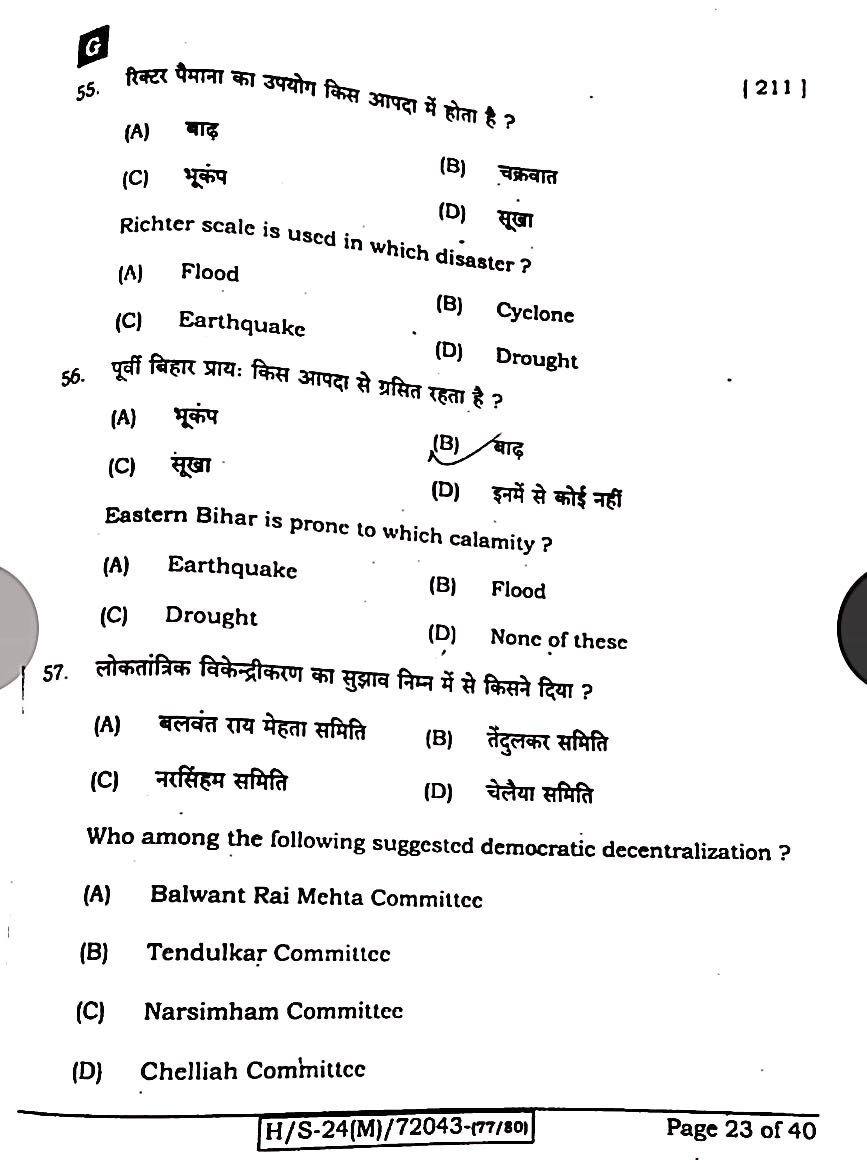 बिहार मैट्रिक 20 फरवरी सामाजिक विज्ञान ओरिजिनल क्वेश्चन पेपर:-