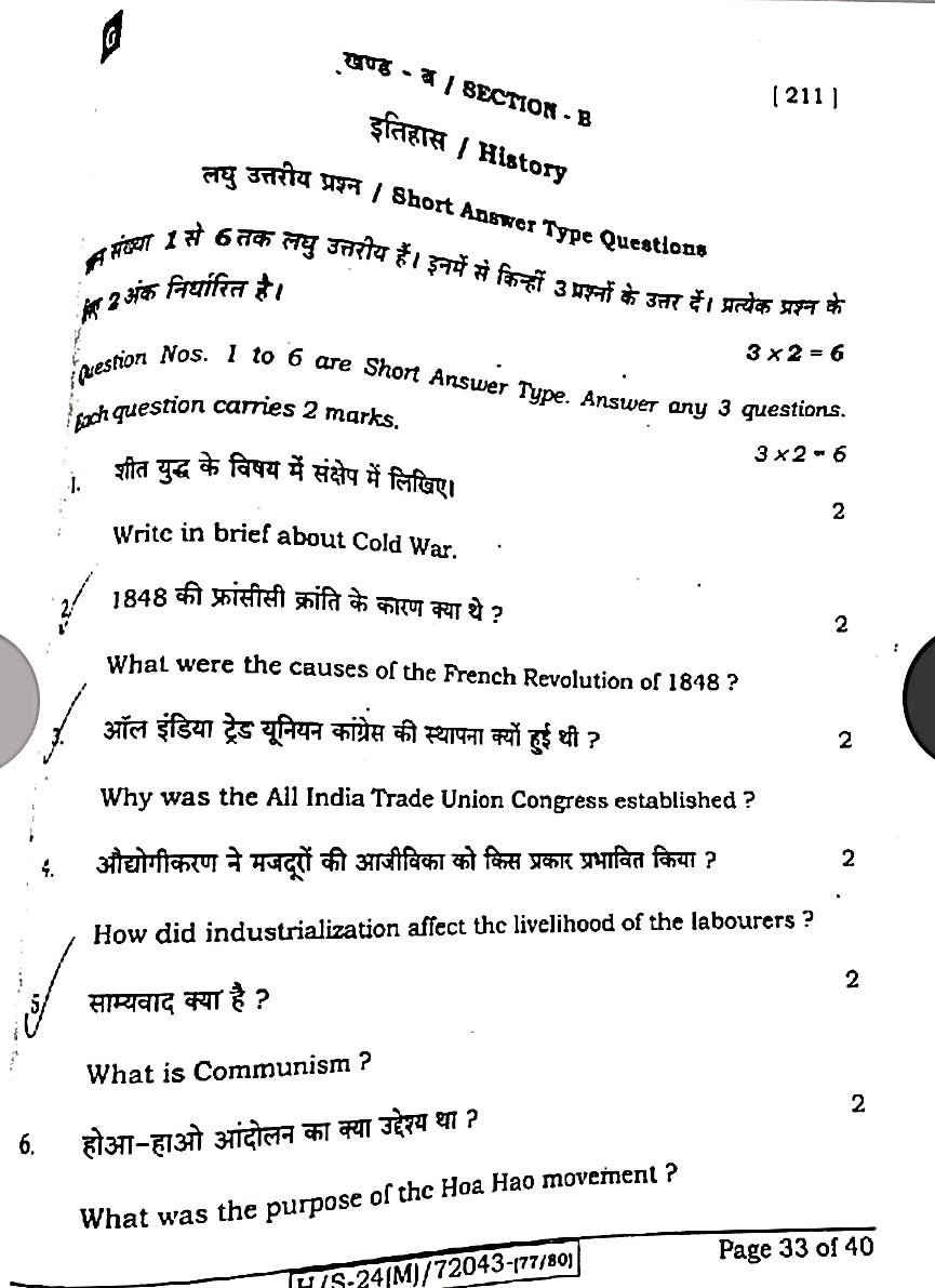 20 फरवरी सामाजिक विज्ञान वायरल क्वेश्चन पेपर:-