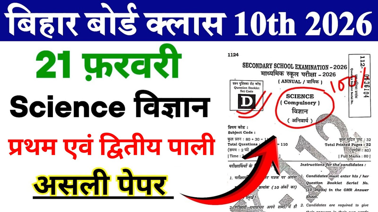 आप सभी विद्यार्थियों को बतला दे की 21 फरवरी के दिन प्रथम पाली एवं द्वितीय पाली में विज्ञान का पेपर आयोजित होने वाला है जो प्रथम पाली की परीक्षा आयोजित कराई जाएगी यह परीक्षा 21 फरवरी के दिन प्रथम पाली में सुबह के 9:30 से लेकर दोपहर के 12:45 तक आयोजित कराई जाएगी वहीं जो द्वितीय पाली की परीक्षा होगी वह परीक्षा दोपहर के 2:00 से लेकर शाम के 5:15 तक आयोजित कराई जाएगी यानी दोनों पाली की परीक्षा 3 घंटा 15 मिनट की होगी