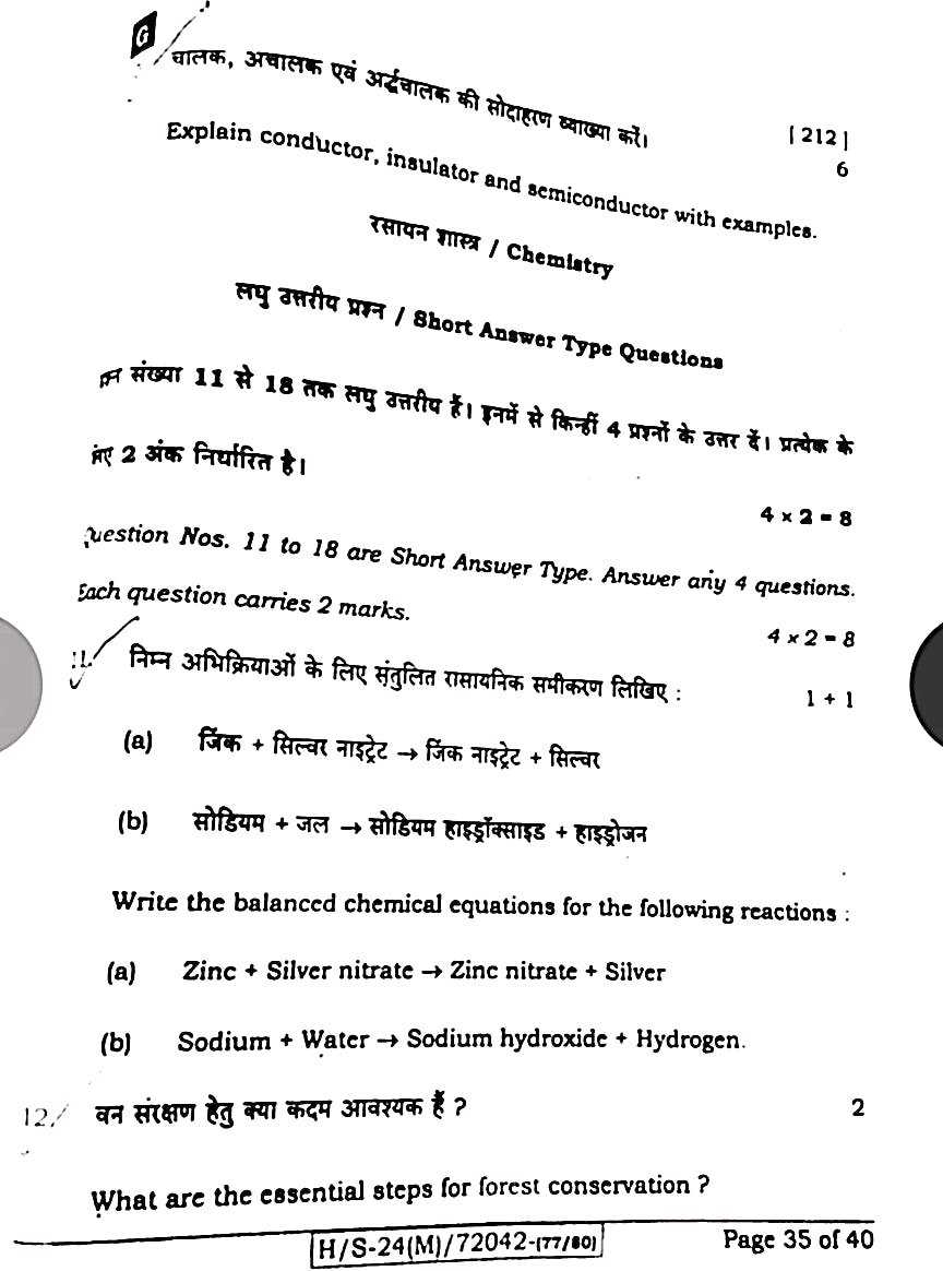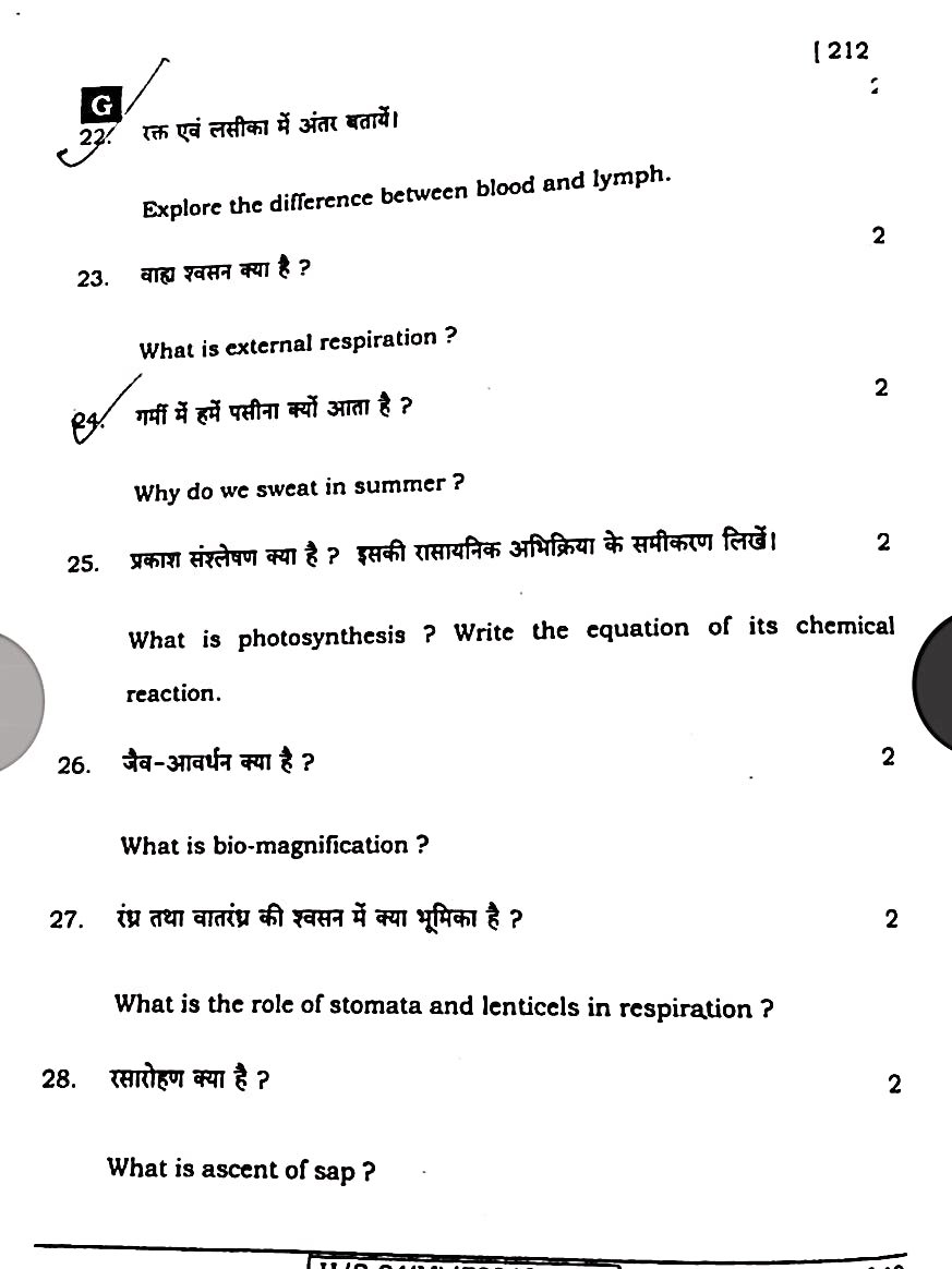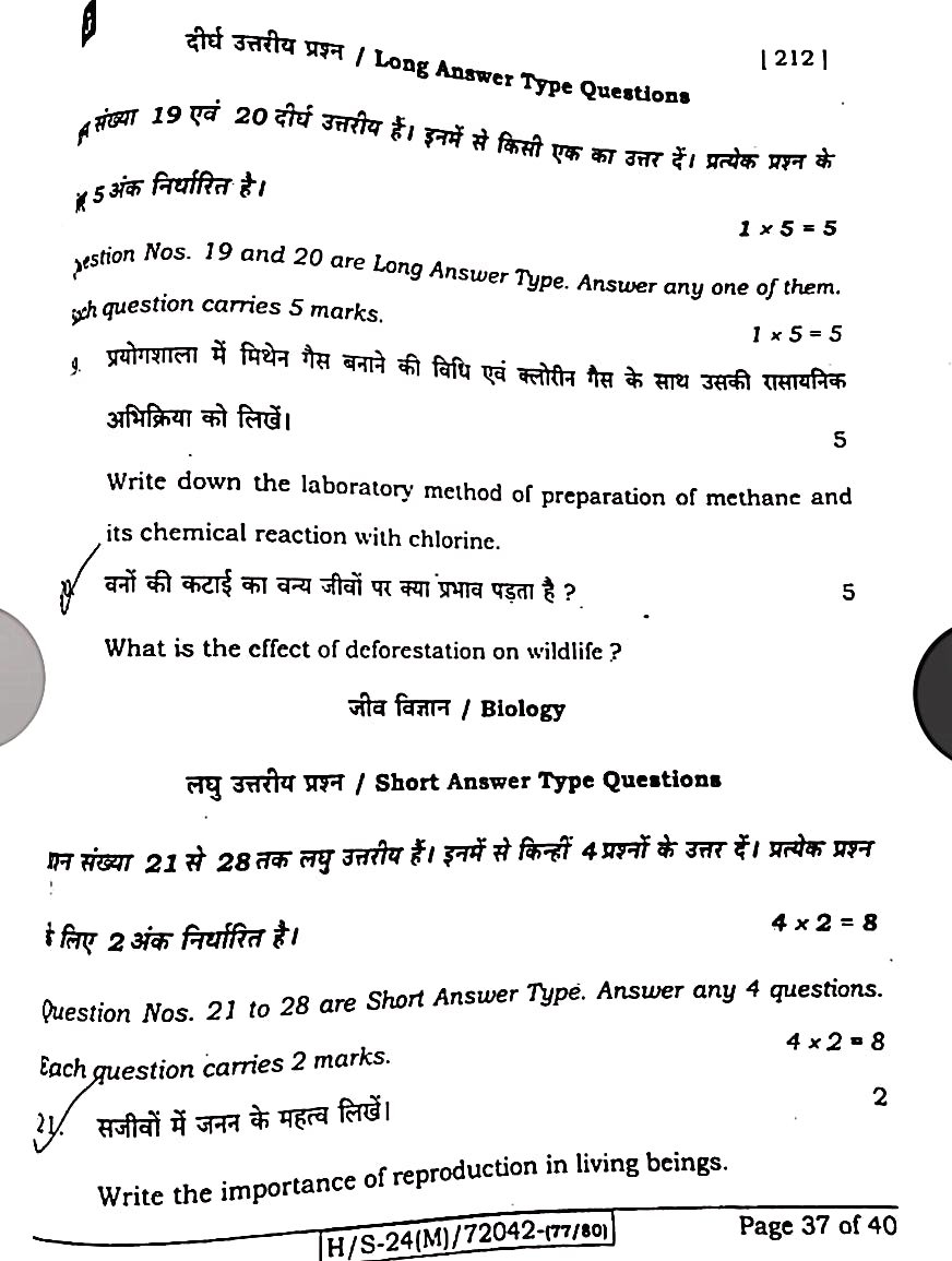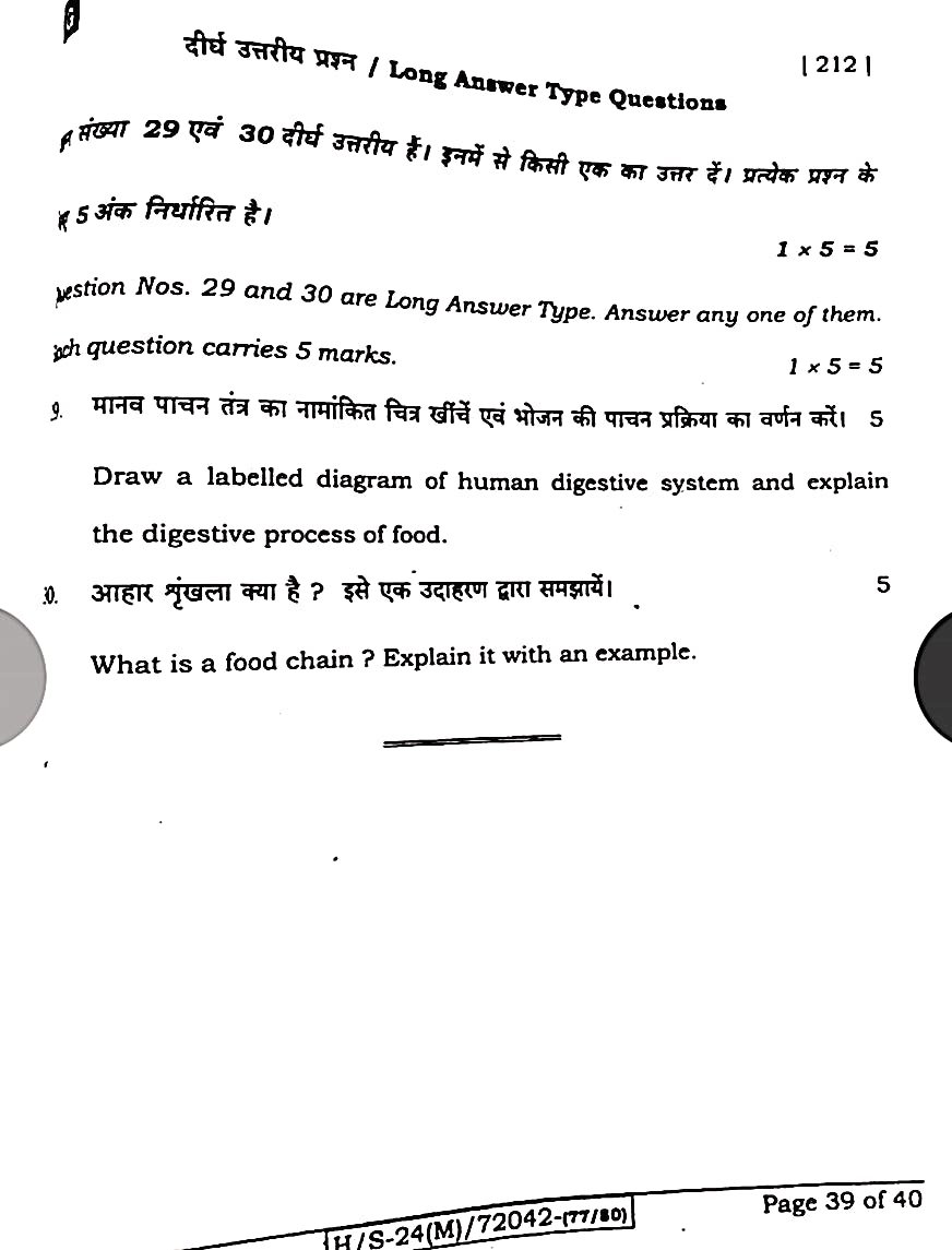 बिहार बोर्ड 21 फरवरी विज्ञान पेपर:-