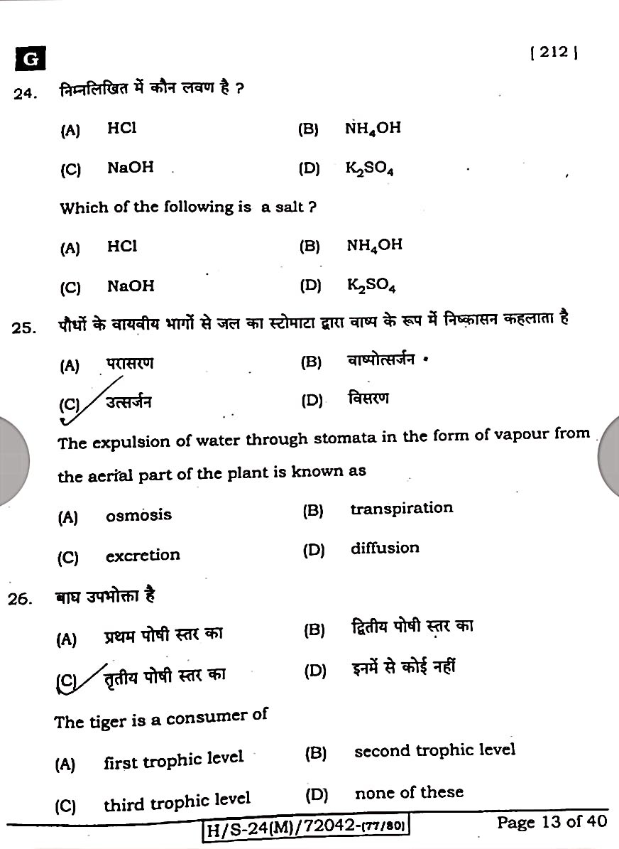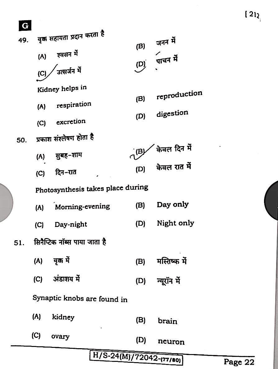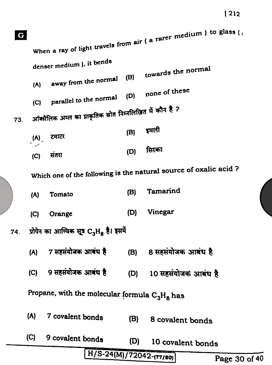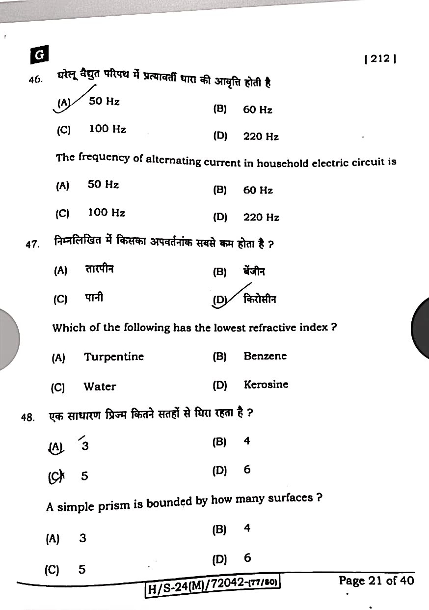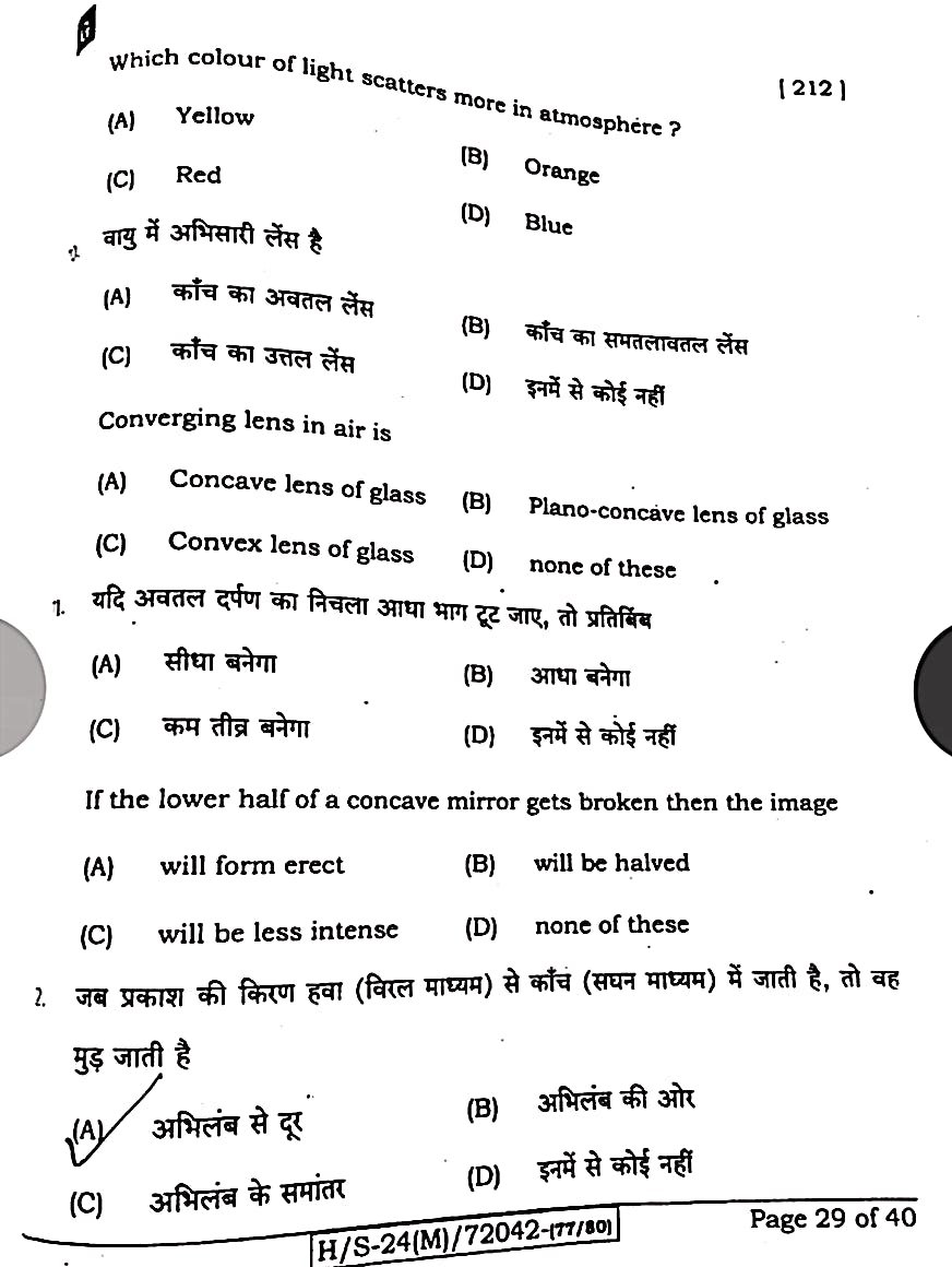 बिहार बोर्ड 21 फरवरी विज्ञान पेपर:-
